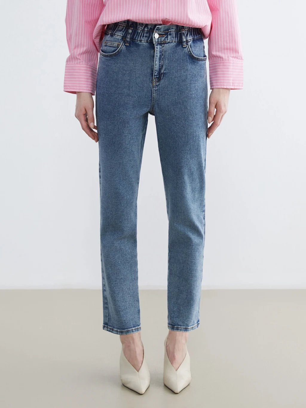 Slim mom fit; belden bileğe kadar daralarak inen bilek boy bir kesime sahiptir. Tasarımı 90'lar denim görüntüsünün günümüze uyarlanmış şeklidir. Esnek kumaş yapısı ile gün boyu rahatlık ve hareket özgürlüğü sağlar.