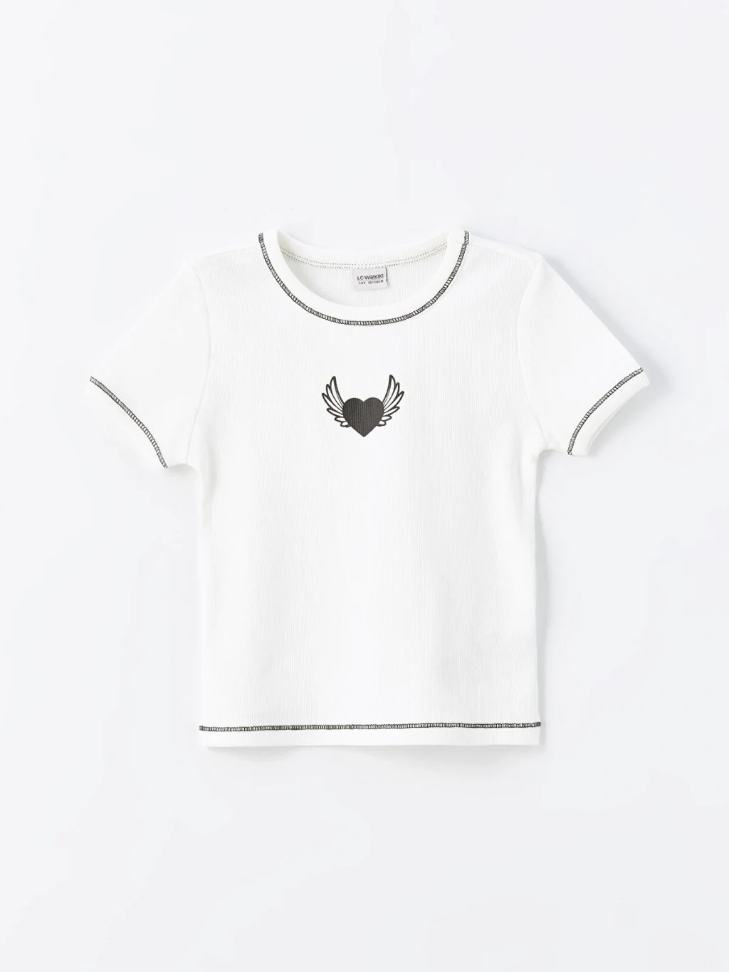 Dar kalıplı kız çocuk tişört, yüksek pamuk içerikli penye kumaştan üretilmiştir. Bisiklet yaka ve kısa kollu olup, önü baskılı ve dikiş detaylıdır.