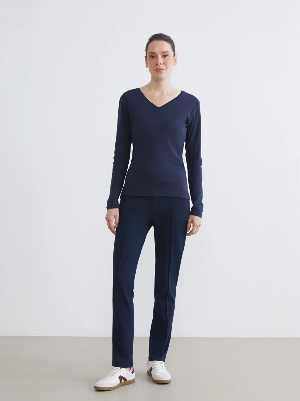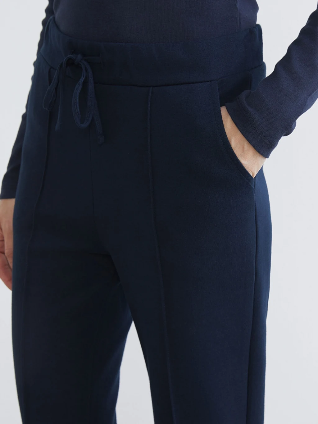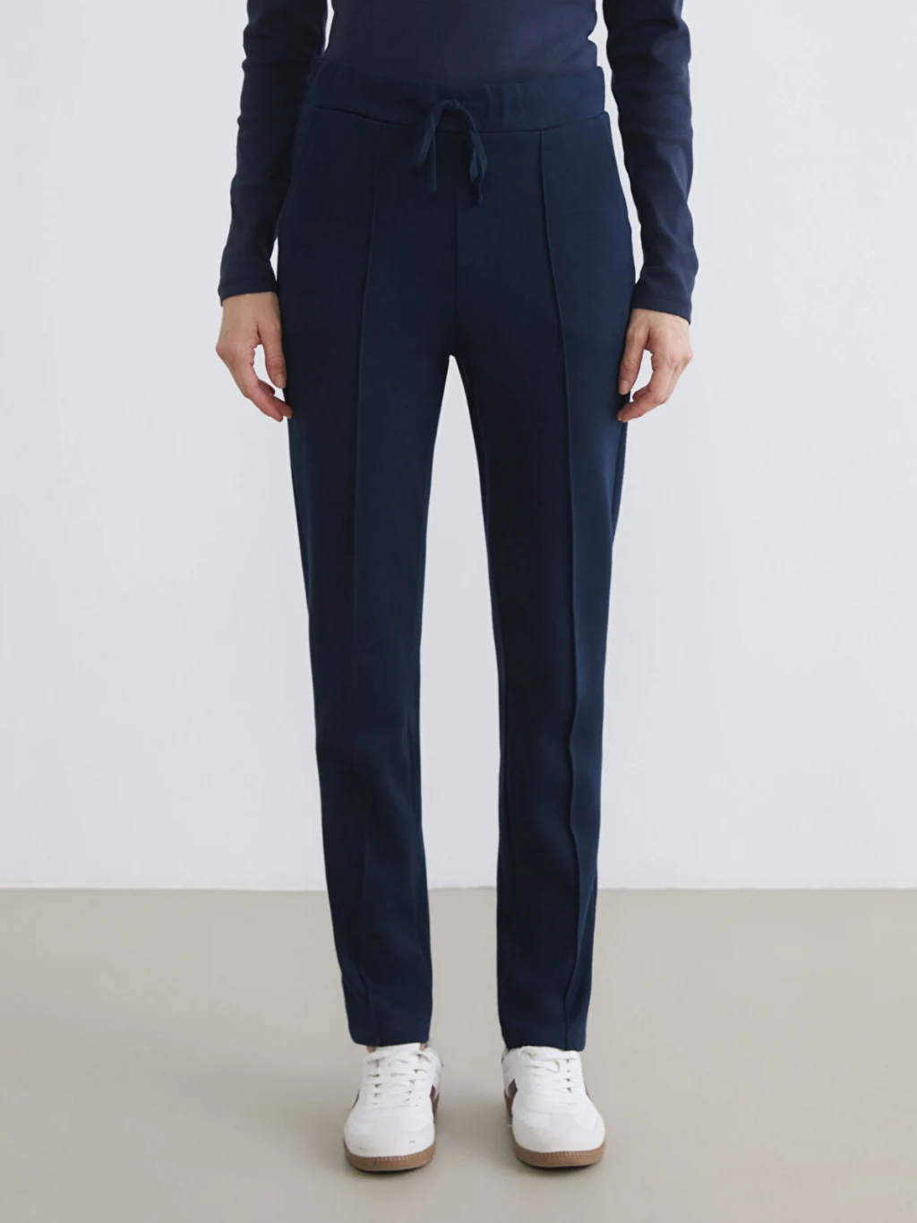 Beli lastikli ve bağcıklı kadın eşofman altı, yüksek pamuk içerikli interlok kumaştan üretilmiştir. Yan cepleri ve paça önünde dikiş detayı bulunur.