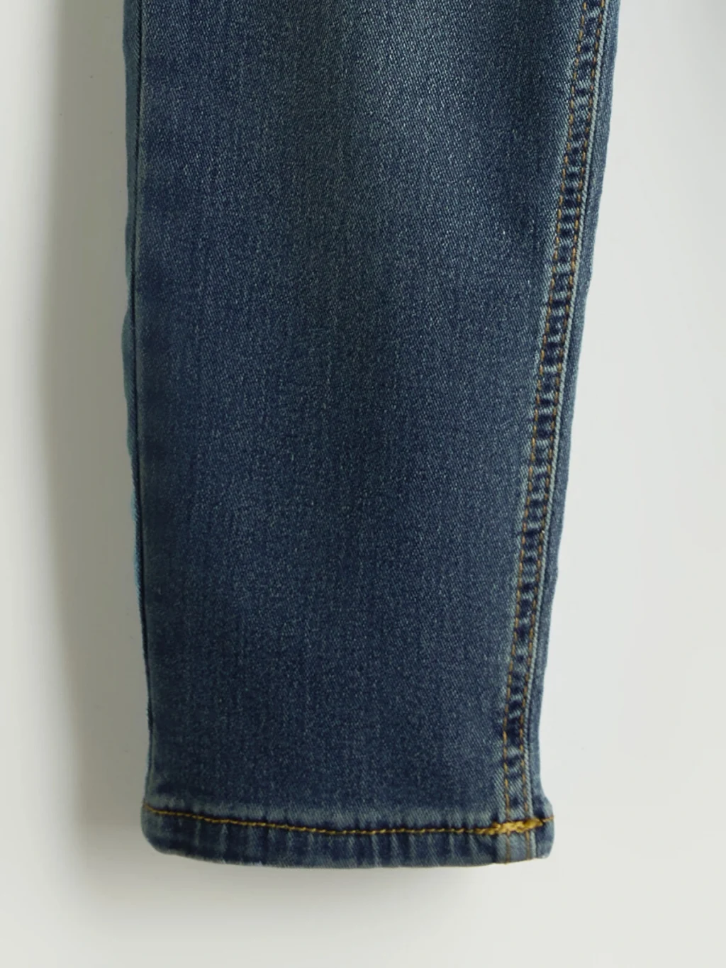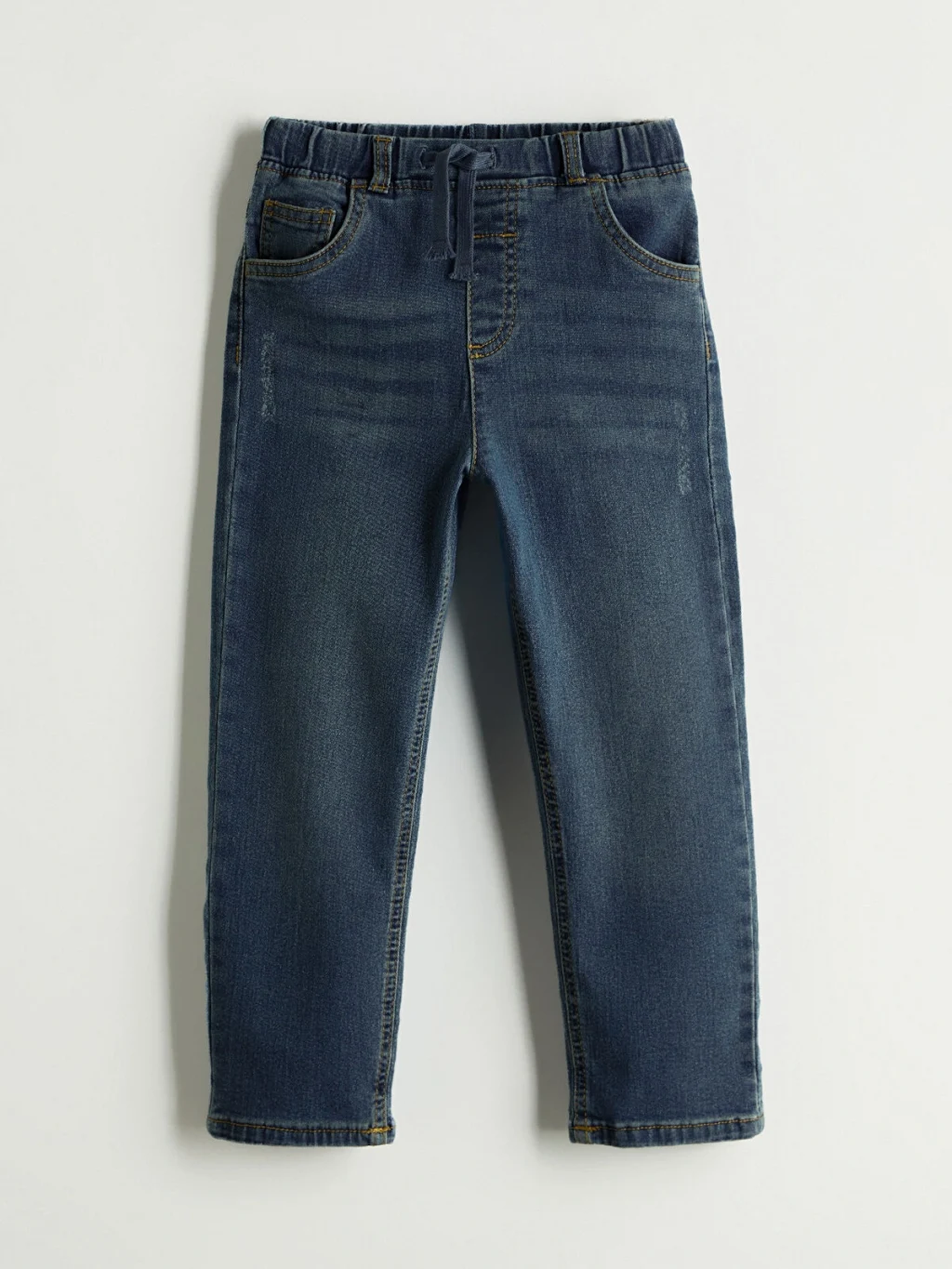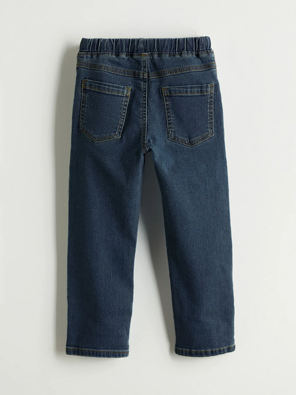Regular fit erkek çocuk jean pantolon, belden paçaya doğru düz inen bir kesime sahiptir. Beli lastikli ve bağcıklıdır.