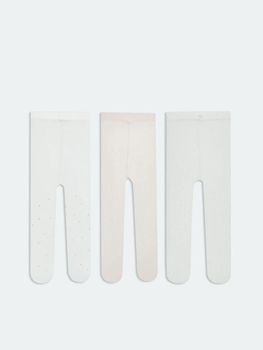 Kız bebek için tasarlanmış, beli lastikli külotlu çorap. Paket içerisinde desenli ve desensiz seçenekler bulunmaktadır.