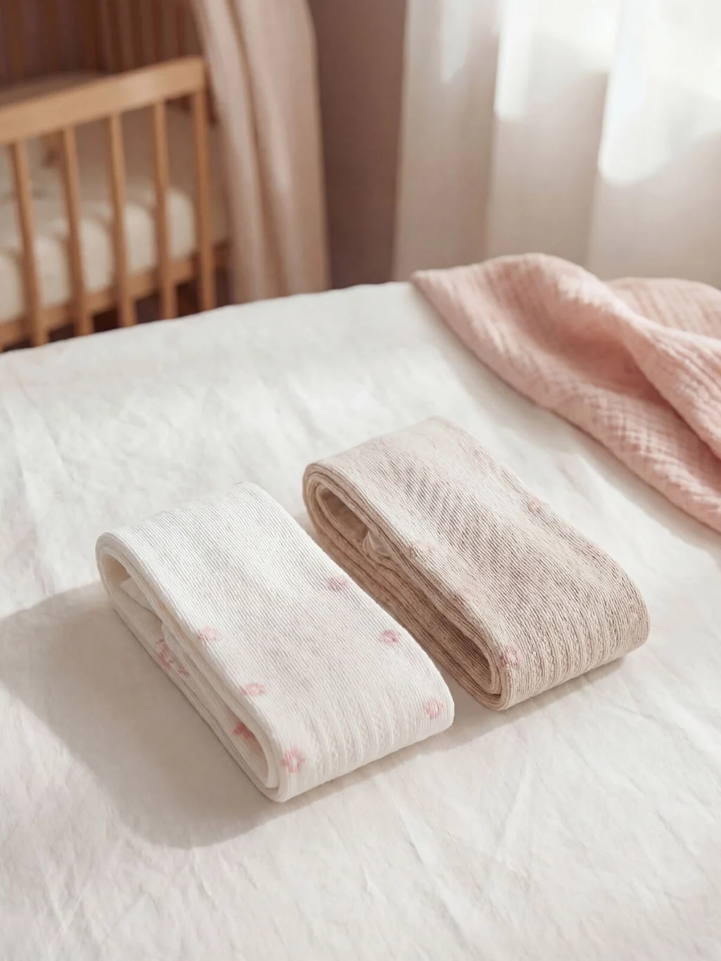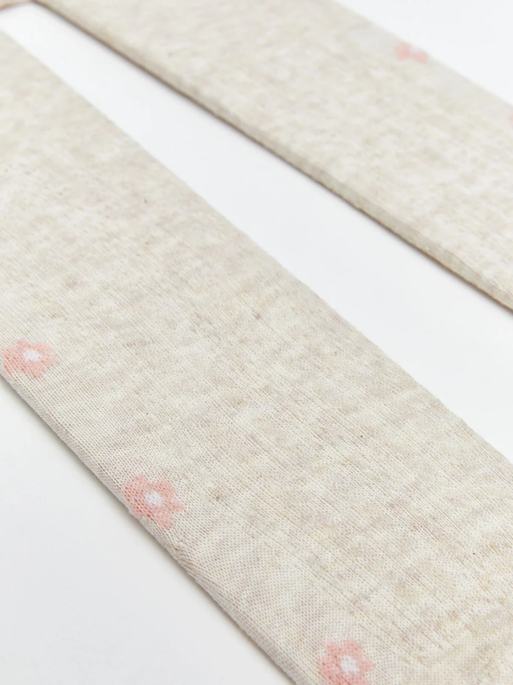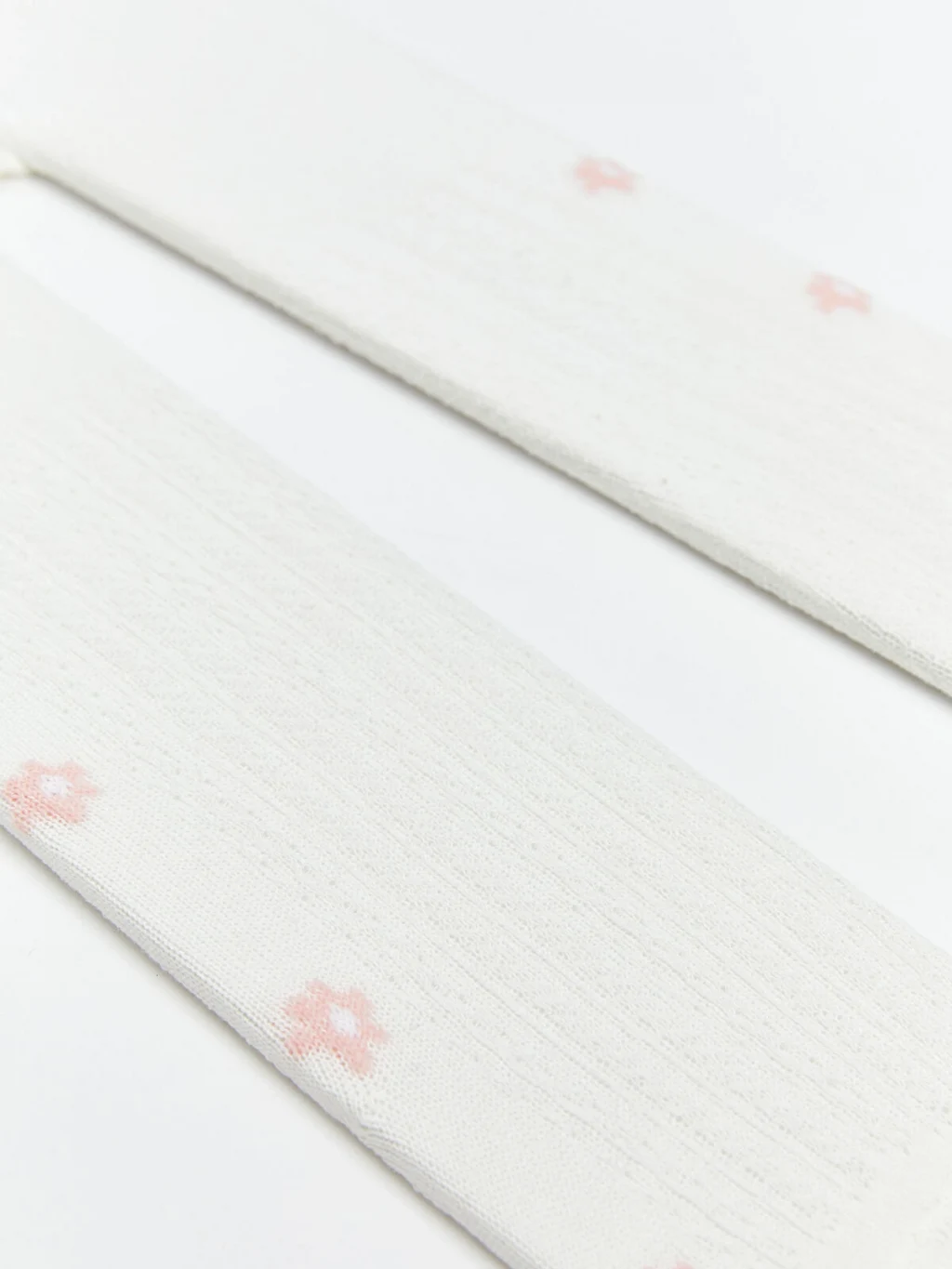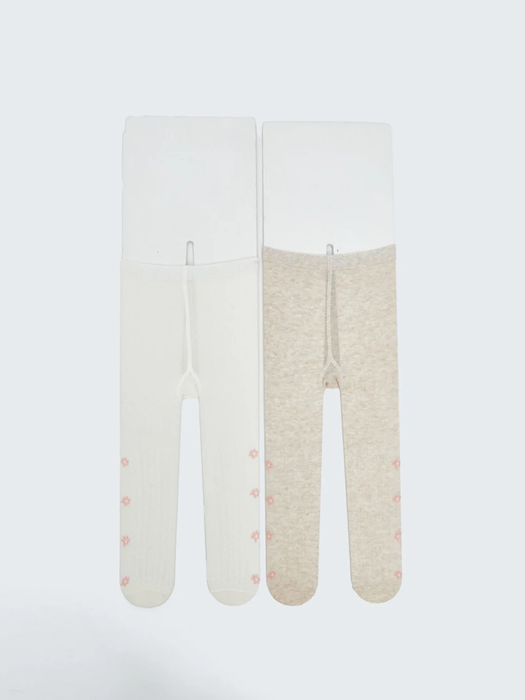 Elastik bel bandına sahip kız bebek külotlu çorap, kapalı burunlu tasarıma ve paça bölümünde çiçek desenlerine sahiptir.