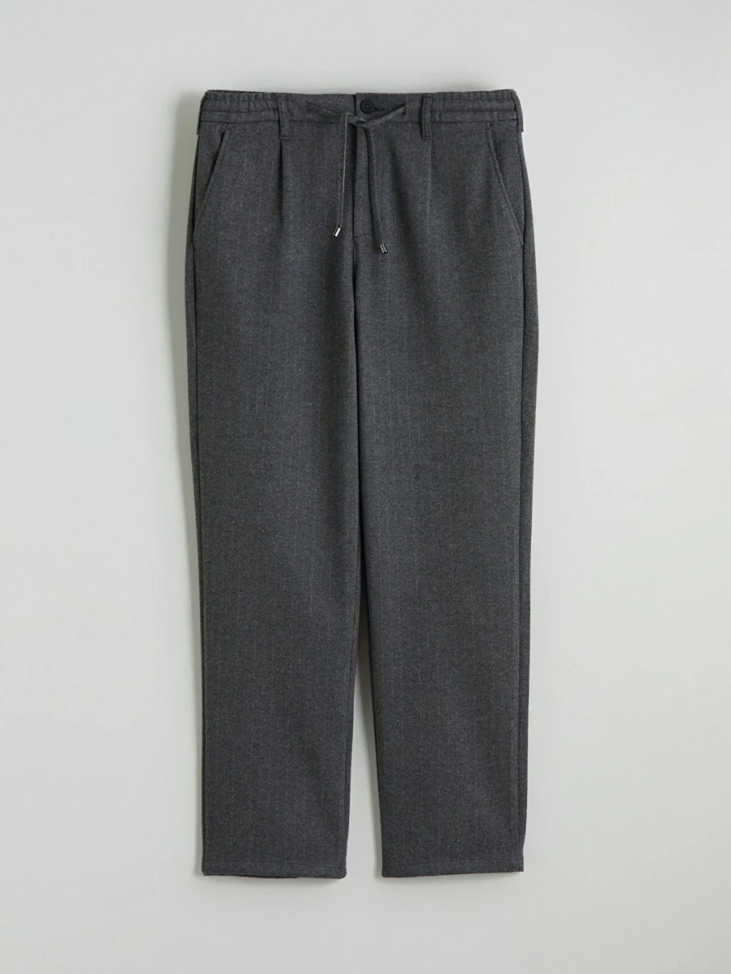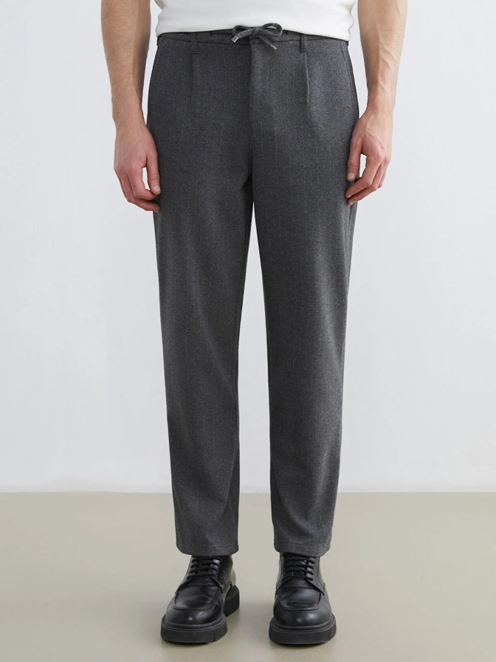 Regular fit kalıplı erkek pantolon, poliviskon kumaştan üretilmiştir. Beli lastikli ve ayarlanabilir bağcıklıdır, önü pililidir.