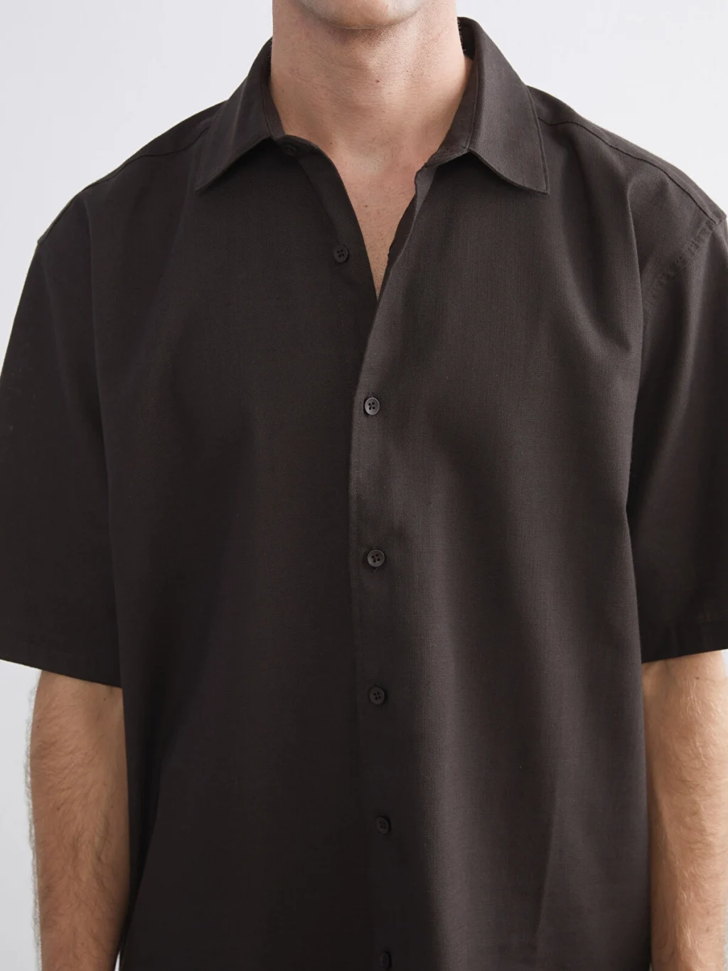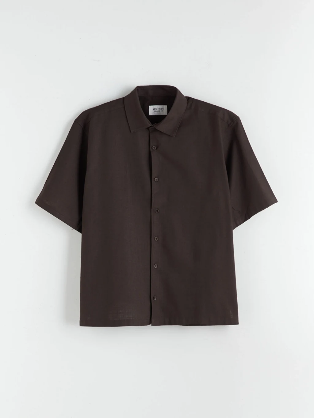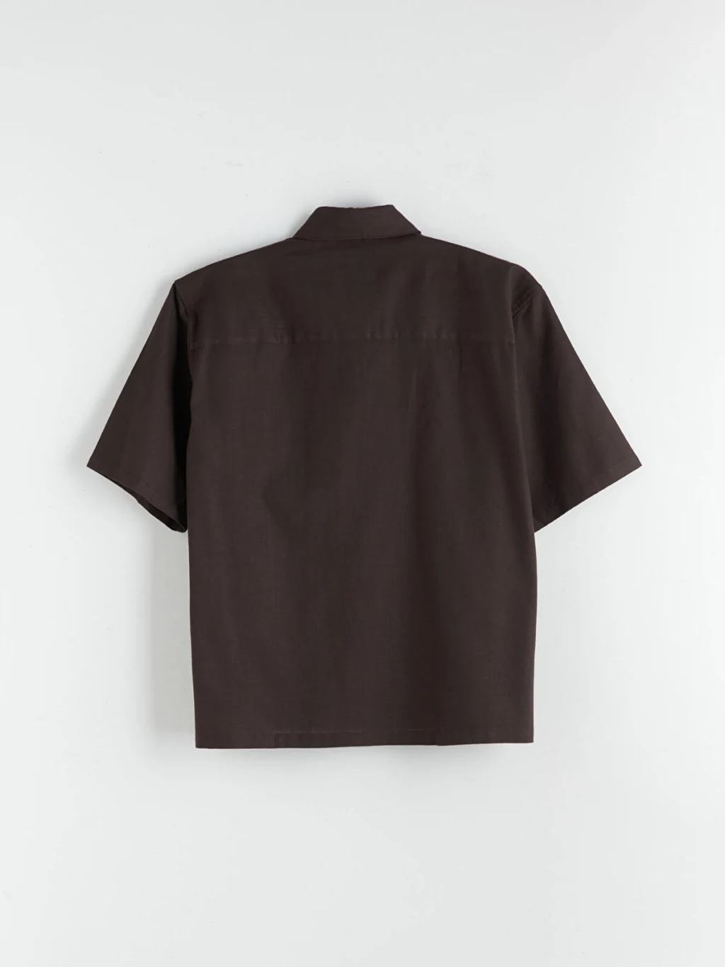 Gömlek yakalı, kısa kollu erkek gömlek, %100 pamuklu kumaştan üretilmiştir ve önden düğme kapamalıdır.