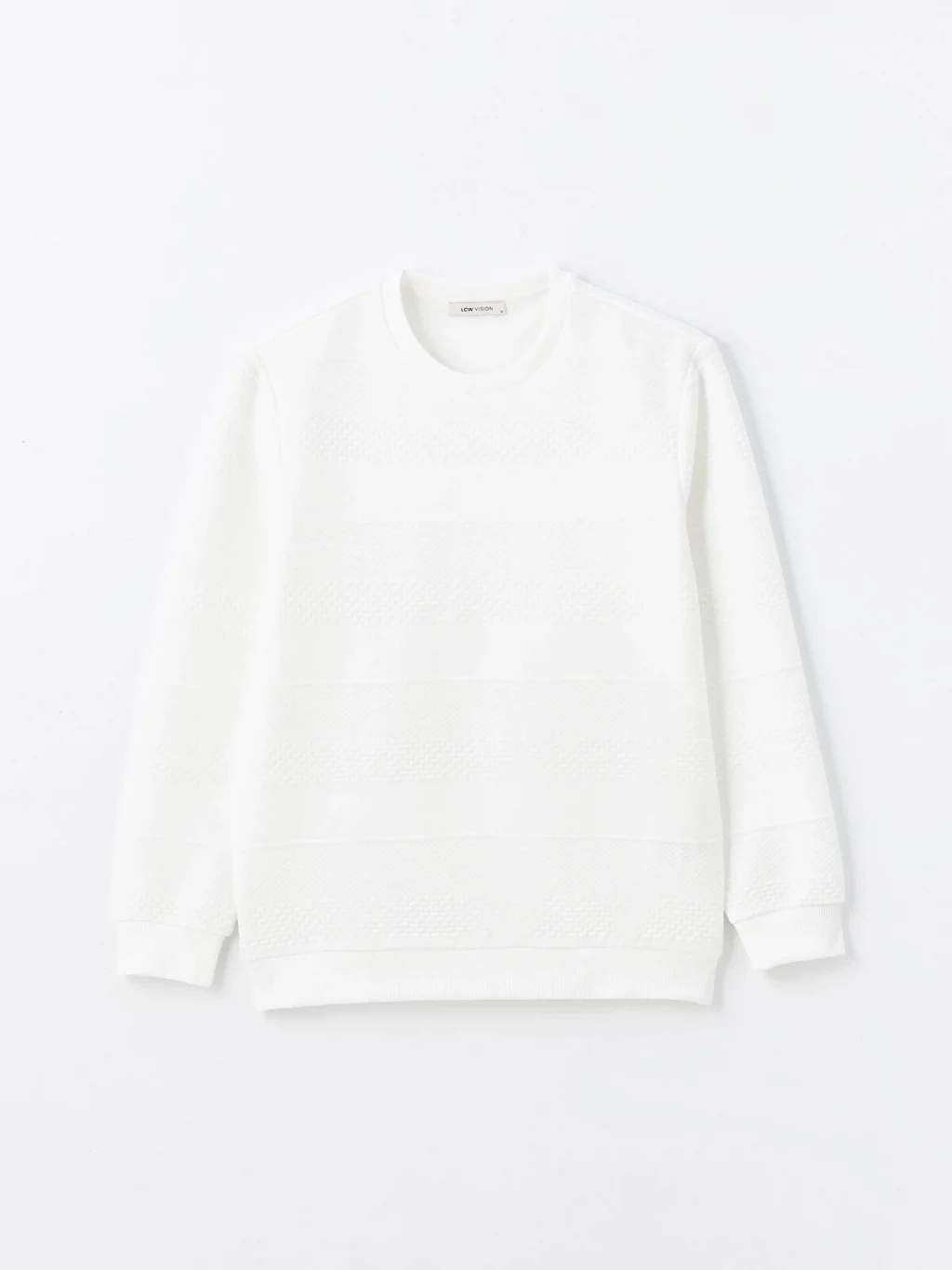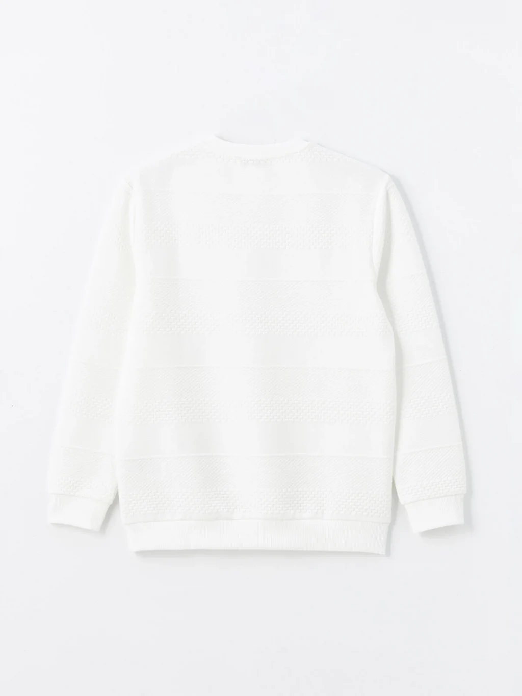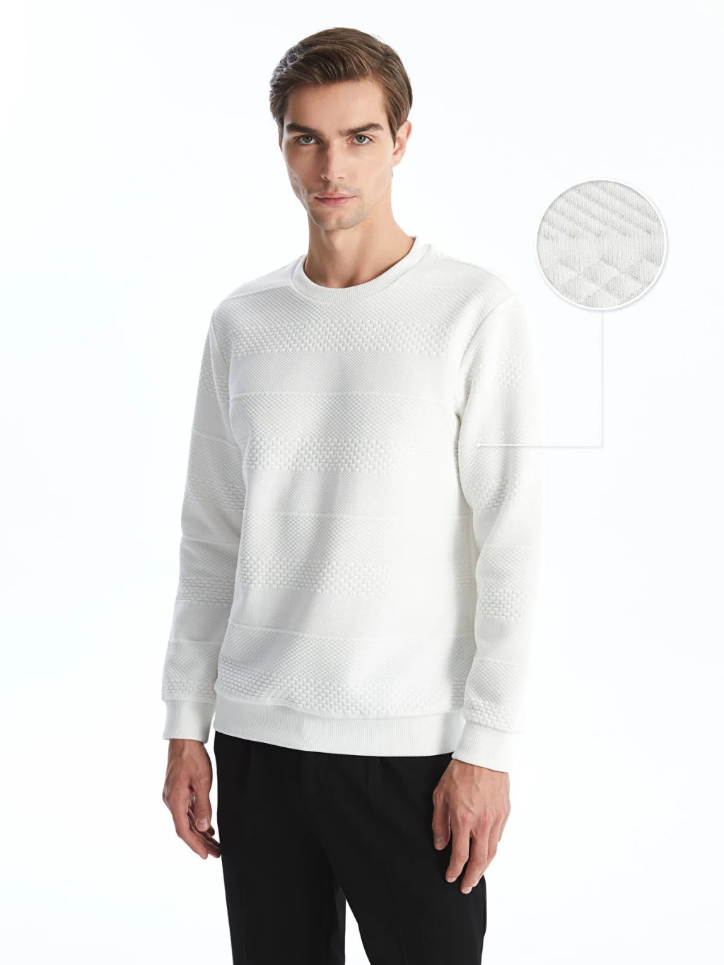 Detaylı ve zengin bir dokuya sahip jakarlı kumaştan yapılmıştır. Bilekleri ve alt kısmı ribanalı tasarımı, kullanım kolaylığı ve rahatlık sunar. Bisiklet yakası ise sweatshirt'e minimalist bir hava katarken, her tür kıyafetle kolayca uyum sağlar.