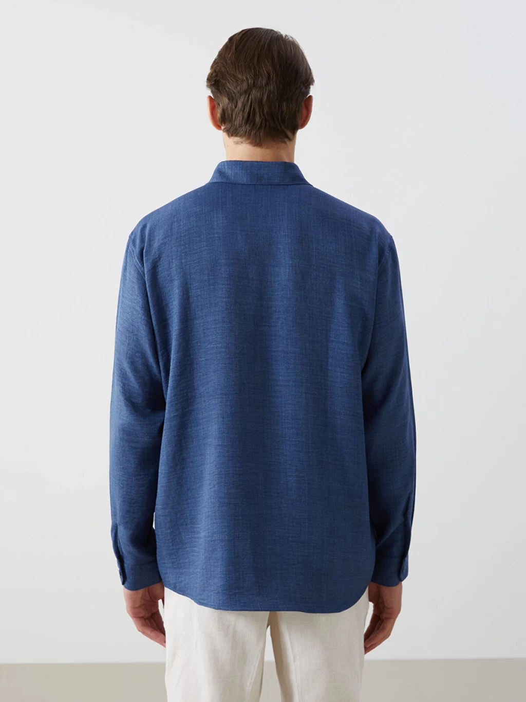 Standart kalıp, uzun kollu, krinkle kumaştan tasarlanmış gömlek.