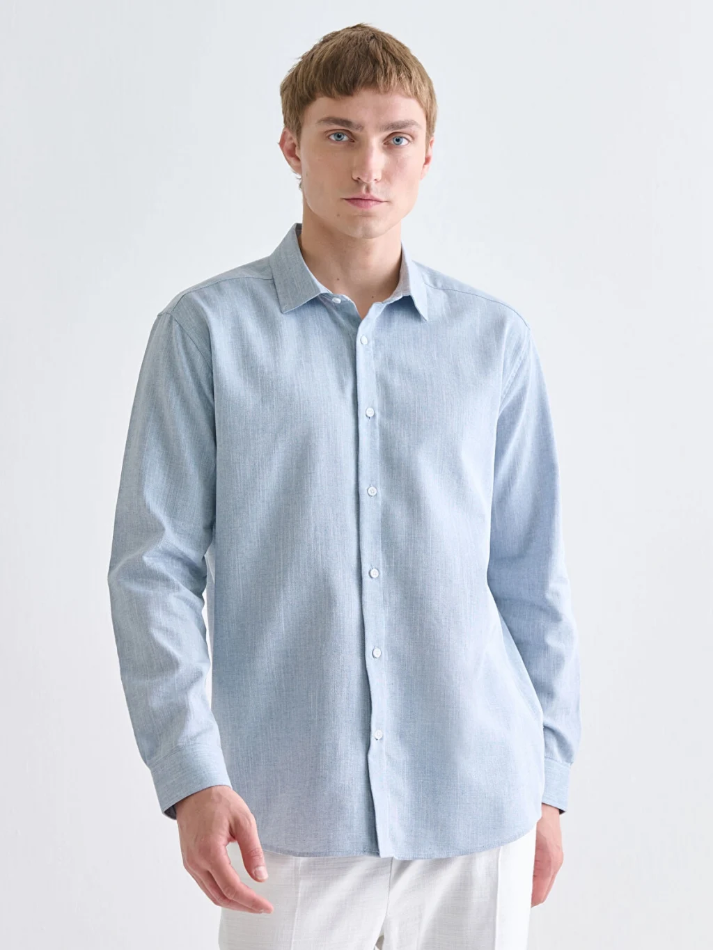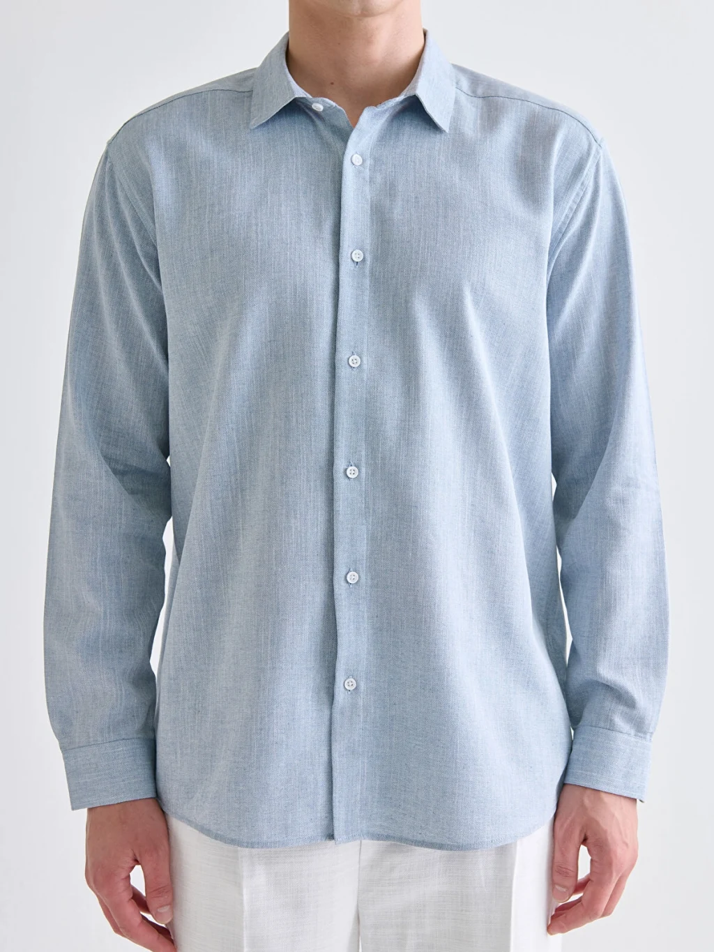 LCW Vision Mavi Regular Fit Uzun Kollu Armürlü Erkek Gömlek