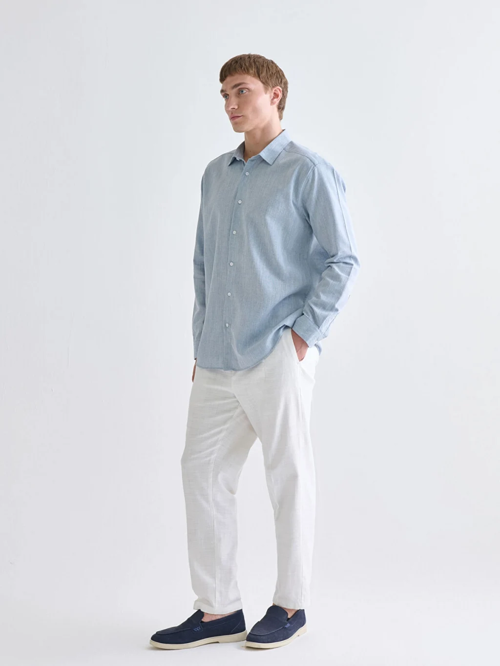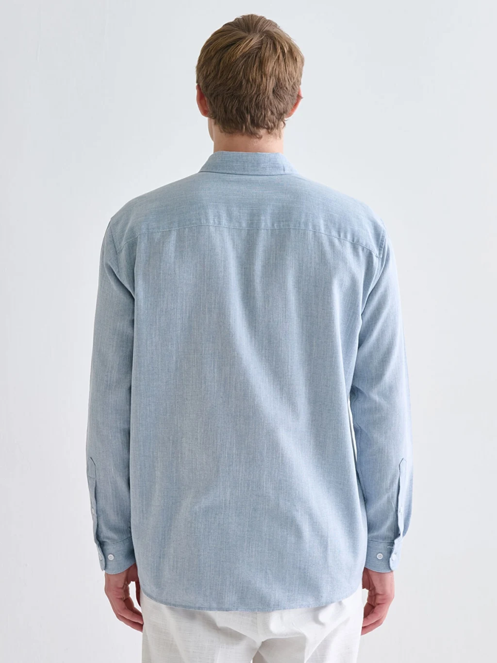 Regular fit kesime sahiptir. Gömlek yaka, uzun kollu ve armürlü kumaştan üretilmiştir.