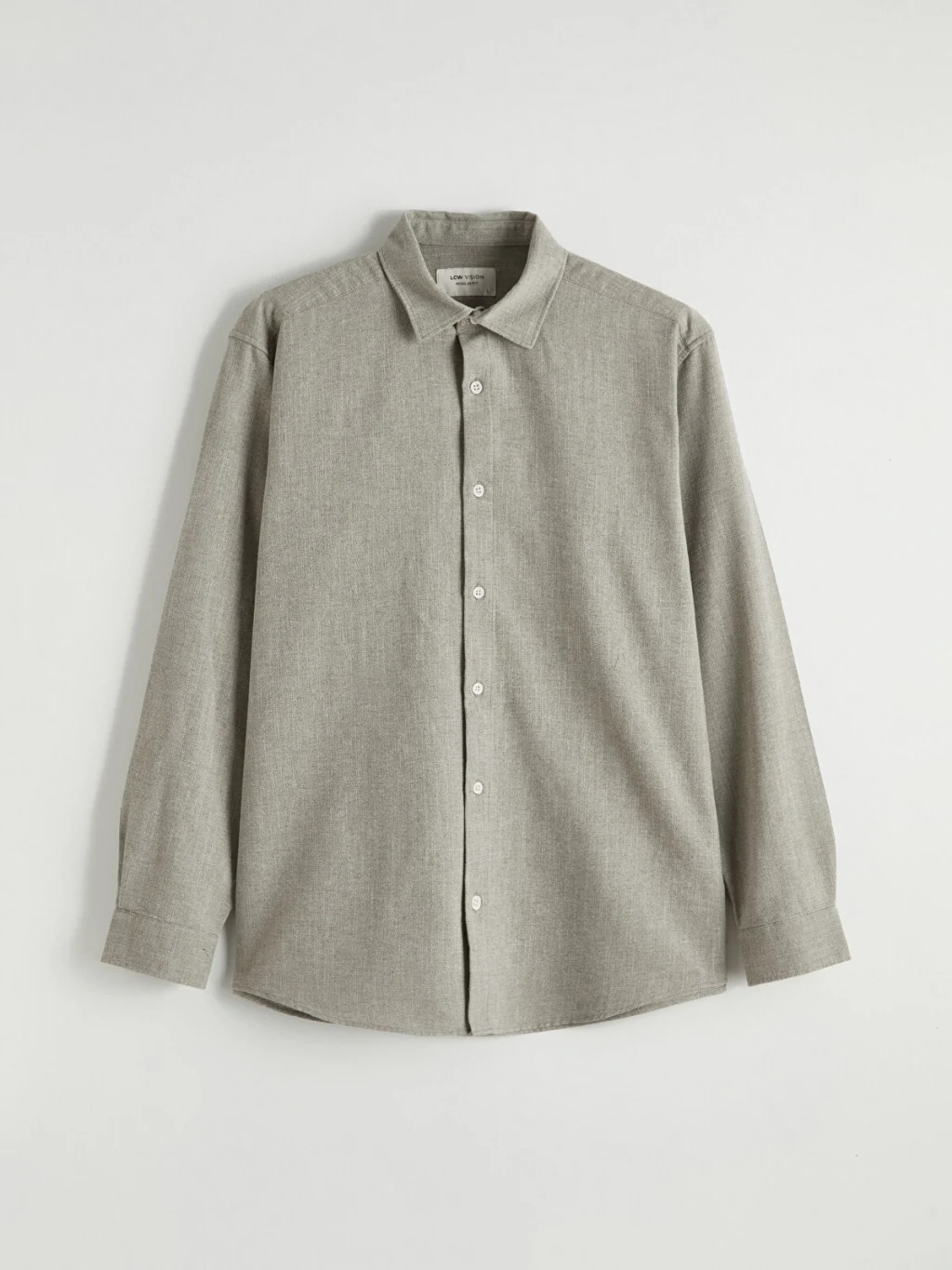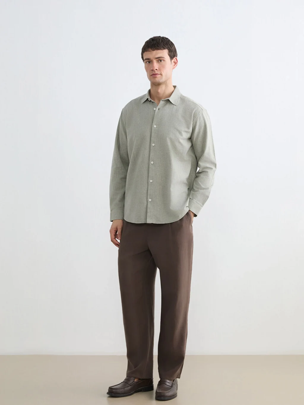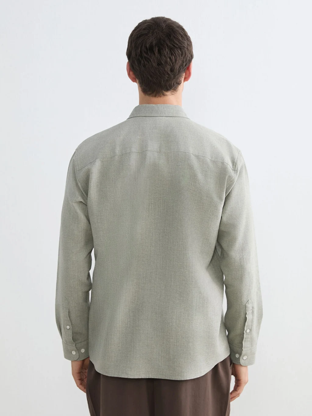 Uzun kollu erkek gömlek, armürlü kumaştan üretilmiştir. Önden düğme kapamalı tasarıma ve manşetli kollara sahiptir.