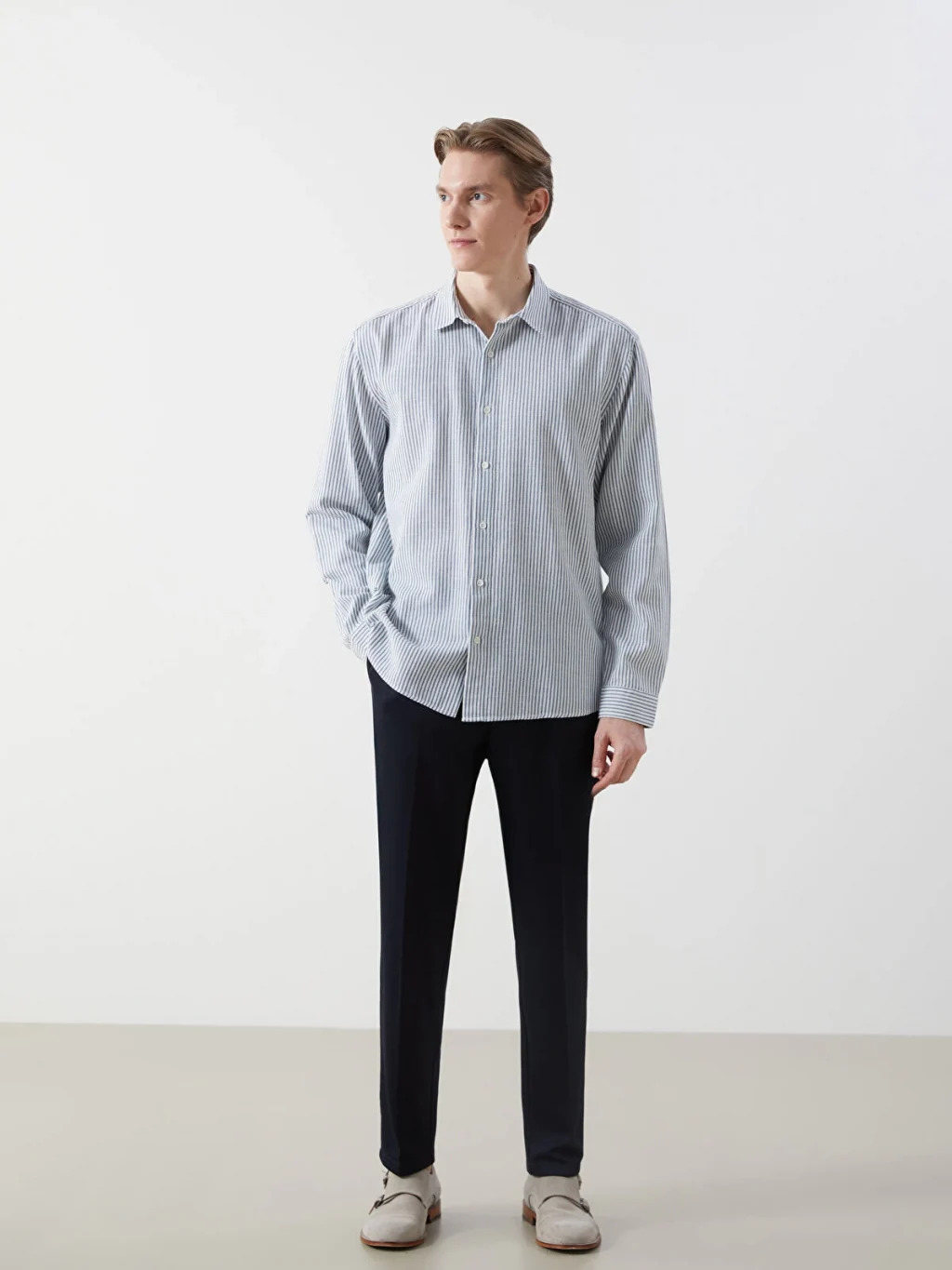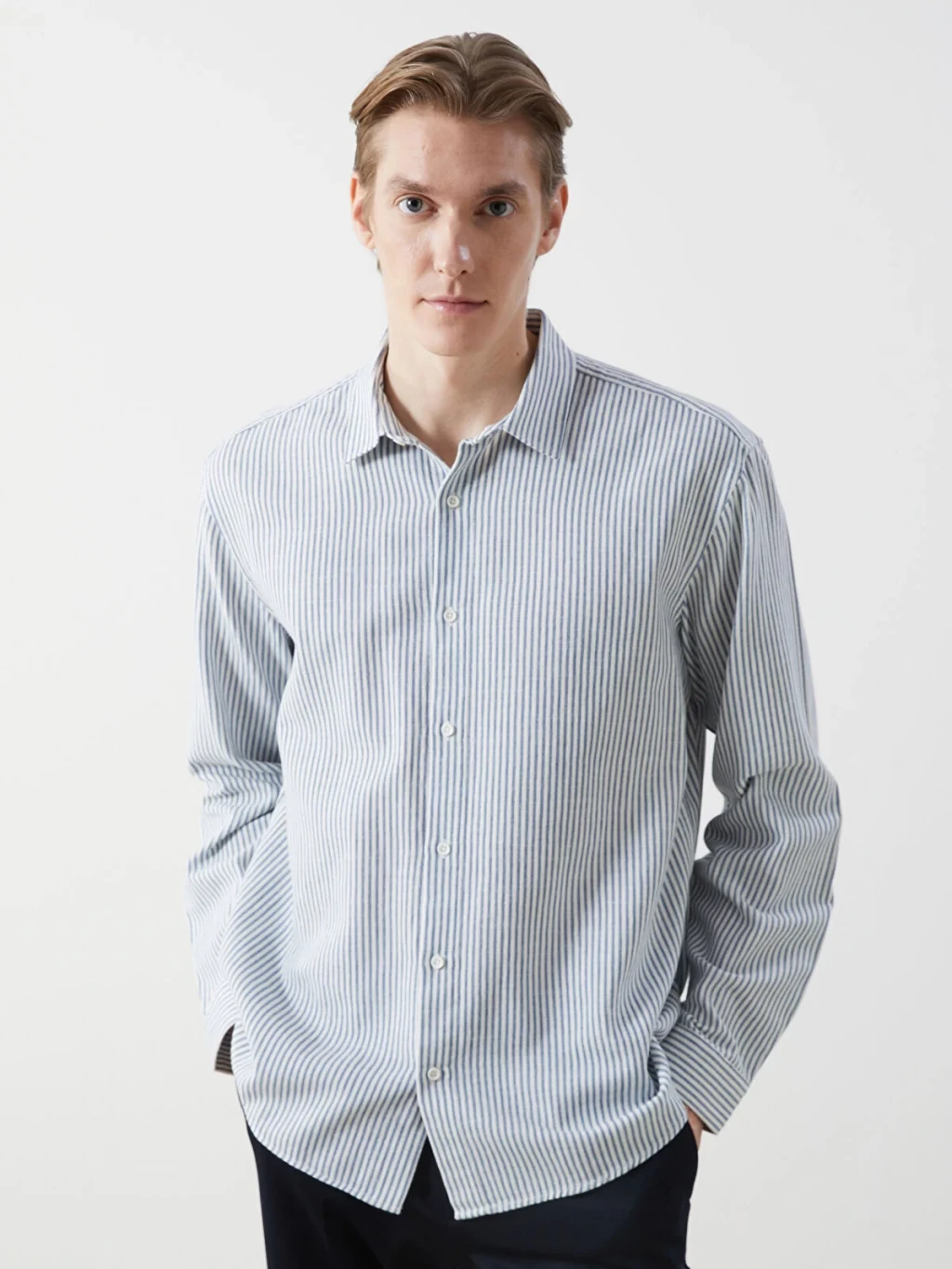 Armürlü kumaştan üretilen bu uzun kollu gömlek, çizgili deseniyle modern bir tarz sunuyor. Düğmeli gömlek yaka detayıyla da şıklığı tamamlıyor. Hem şık hem de rahat bir seçenek olan bu gömlek, stilinize zarif bir dokunuş katıyor.