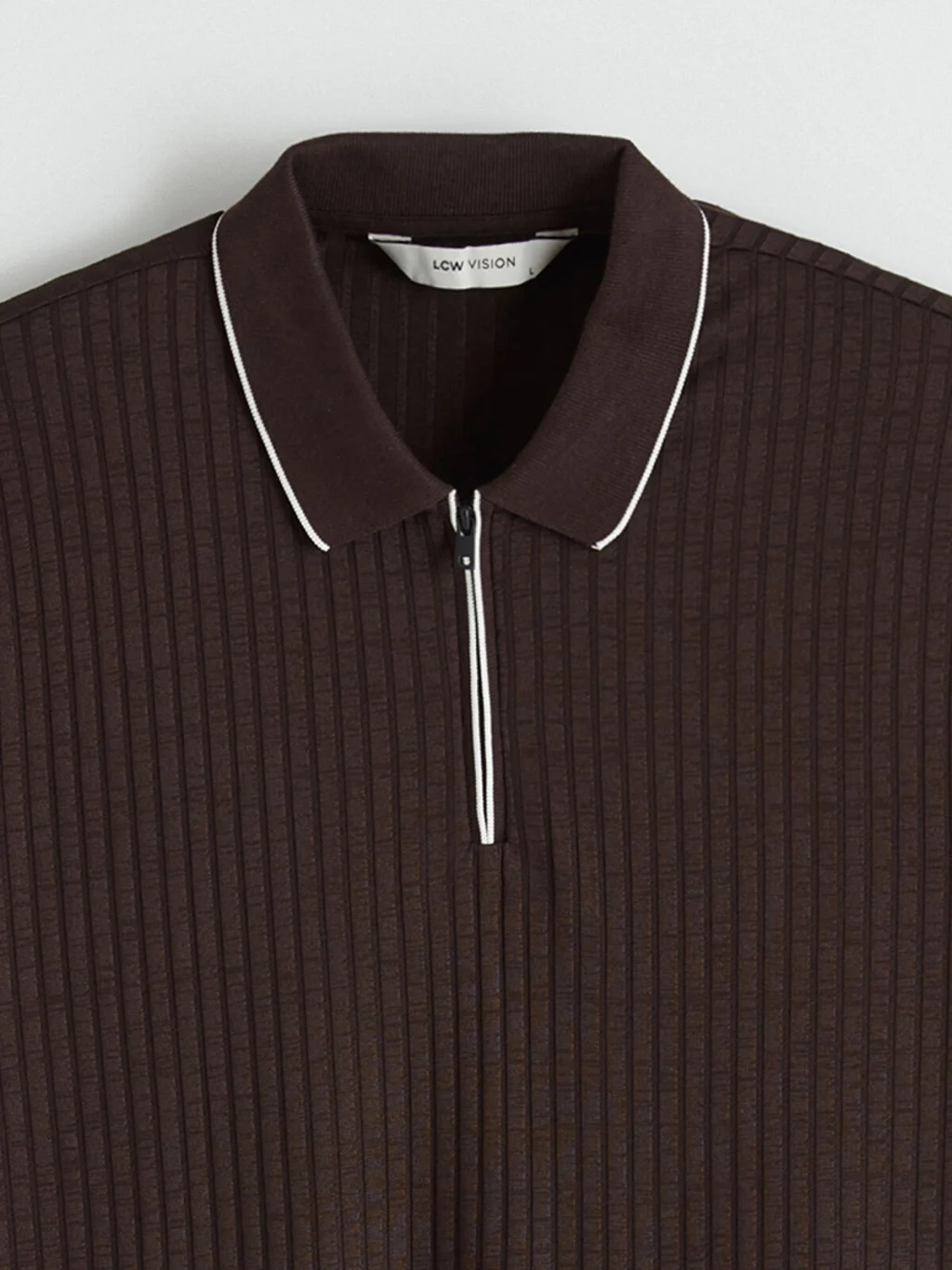 Standart kalıp, polo yakalı erkek tişört, fitilli kumaştan üretilmiştir. Kısa kollu ve yarım fermuar kapamalıdır, yaka ve kol ucu biyelidir.