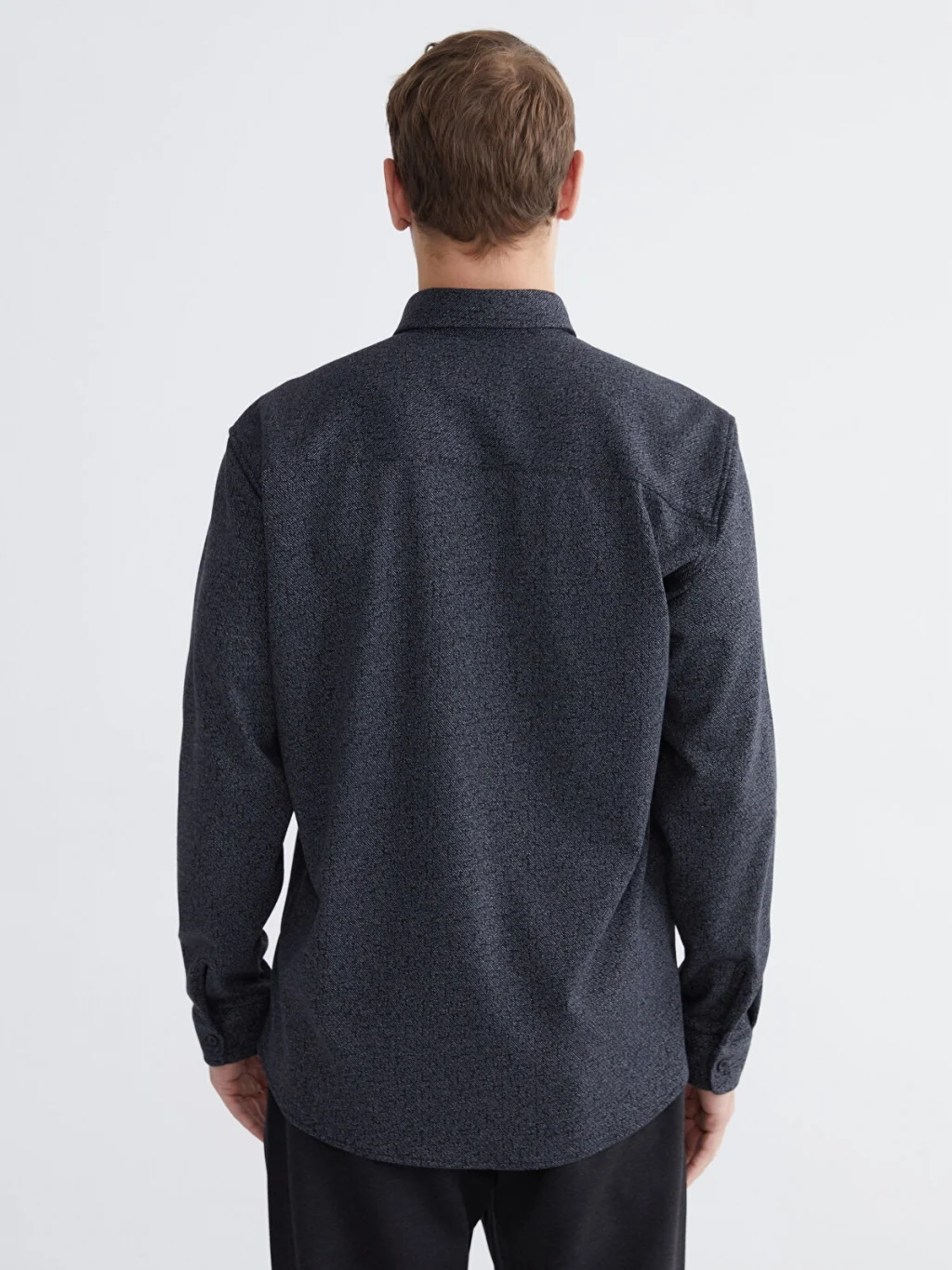 Uzun kollu erkek gömlek, önden ve manşetlerinden düğme kapamalıdır. Desenli kumaştan üretilmiştir.