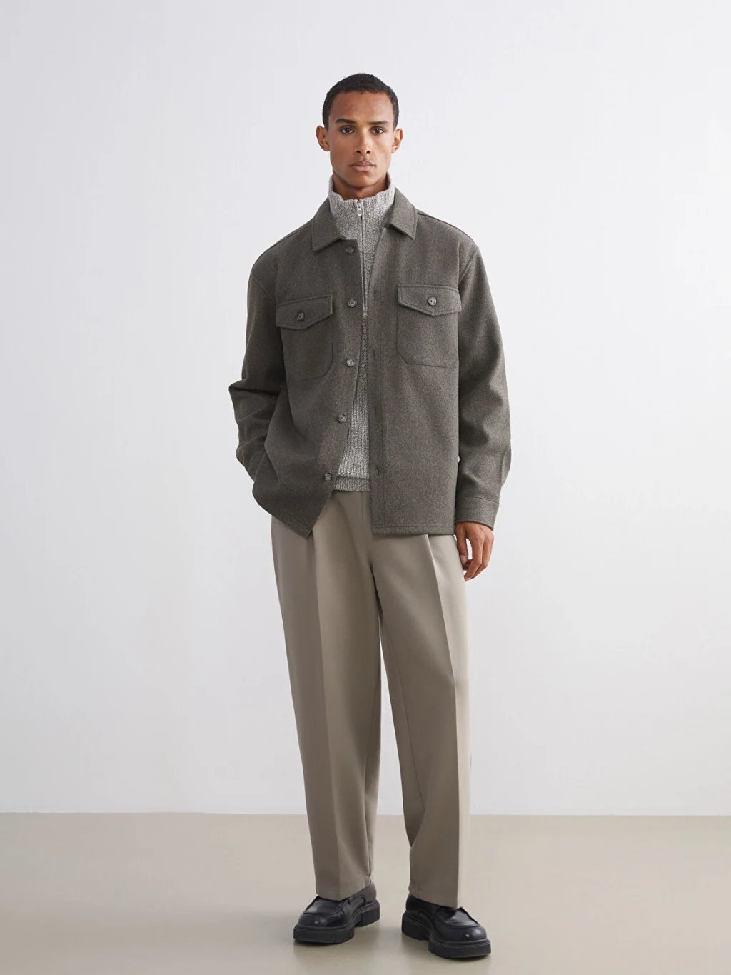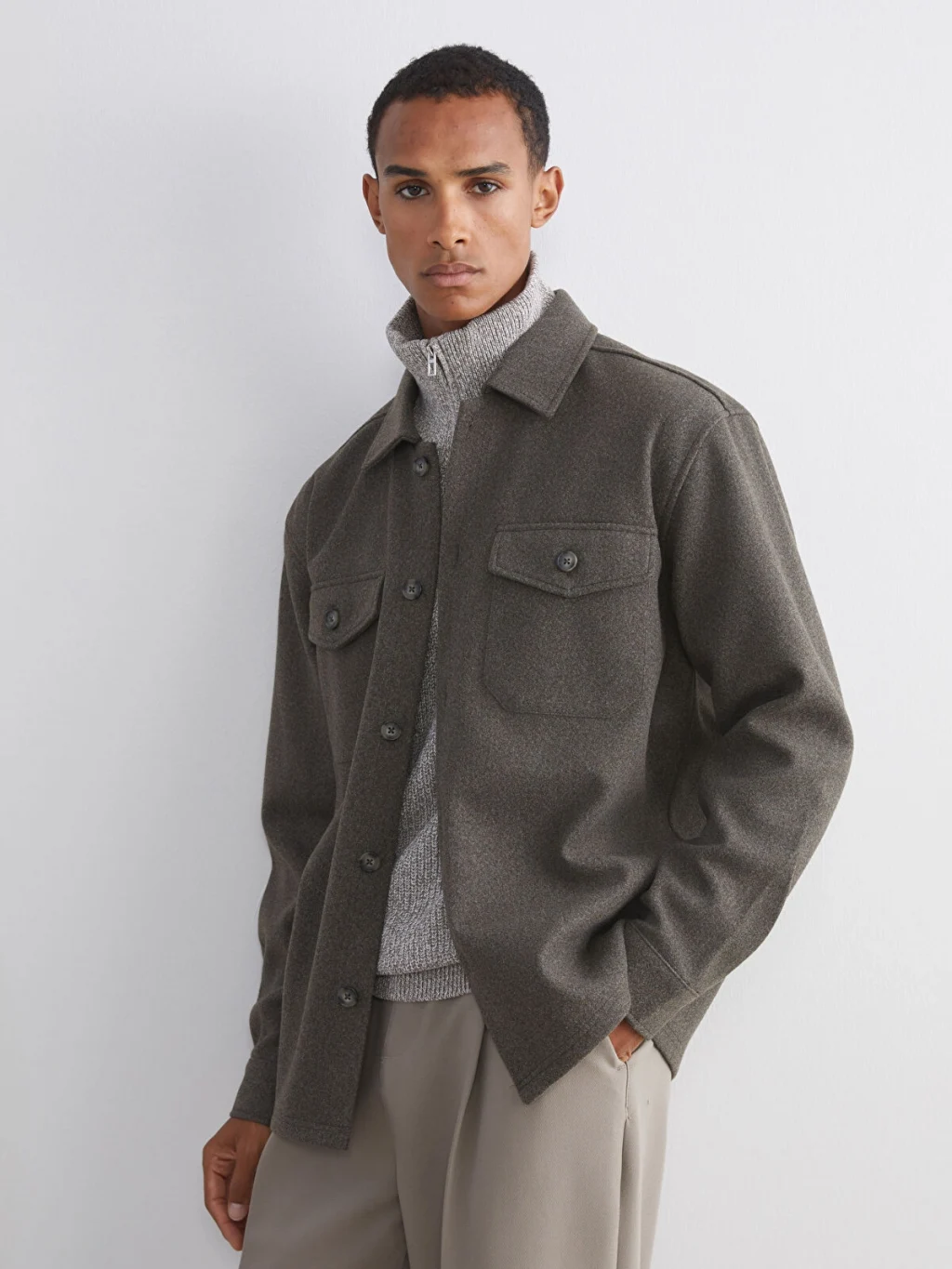 Gömlek yakalı erkek gömlek ceket, uzun kolludur. Önden düğme kapamalıdır ve göğüs kısmında iki adet kapaklı cebi bulunur.