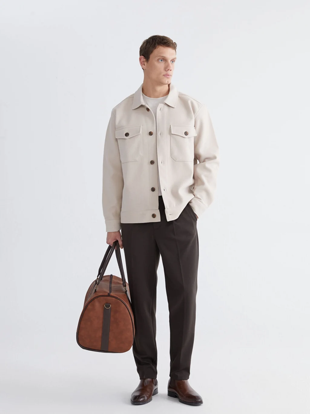 Gömlek yakalı erkek gömlek ceket, uzun kolludur. Önden düğme kapamalıdır ve göğüs kısmında kapaklı, düğmeli iki adet cebi bulunur.