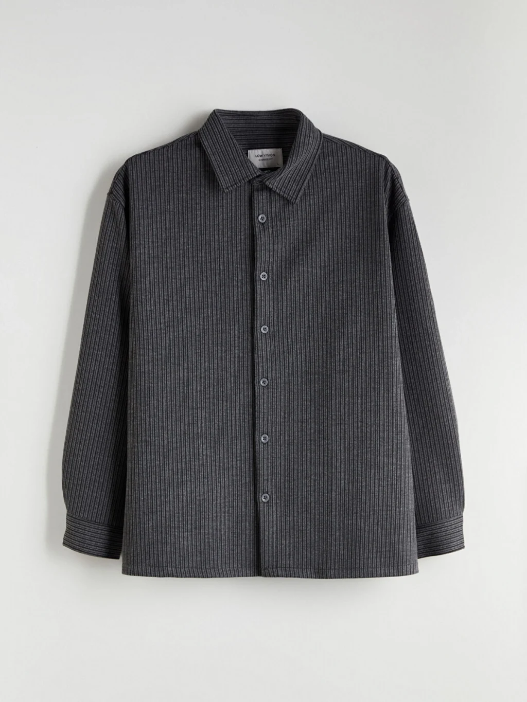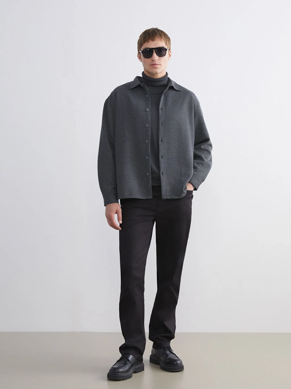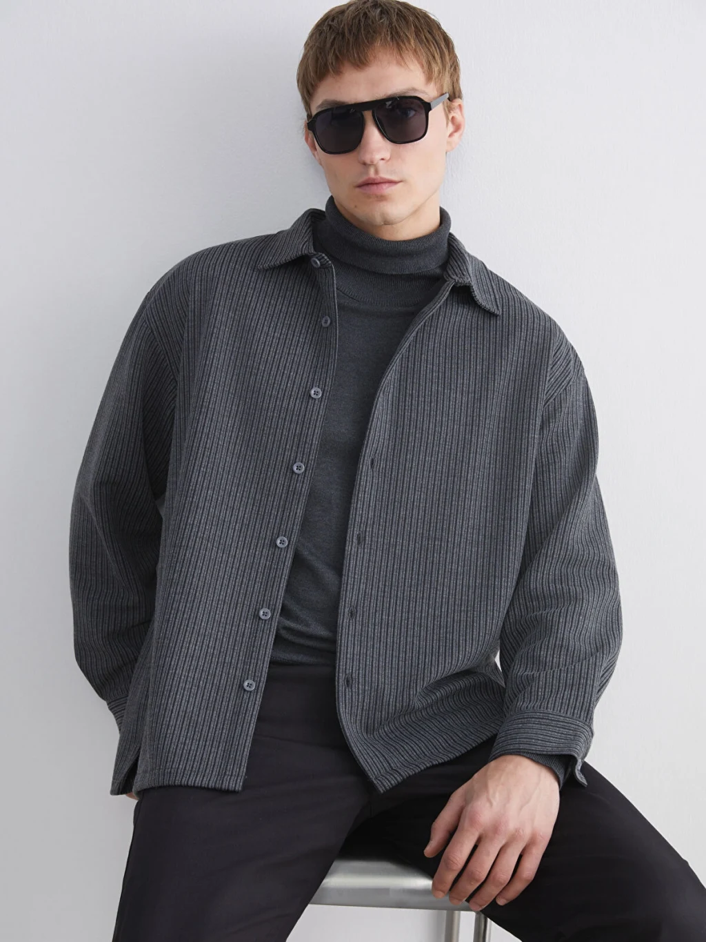 Gömlek yakalı erkek gömlek, uzun kollu ve önden düğme kapamalıdır. Fitilli dokulu kumaştan üretilmiştir ve manşetleri düğmelidir.