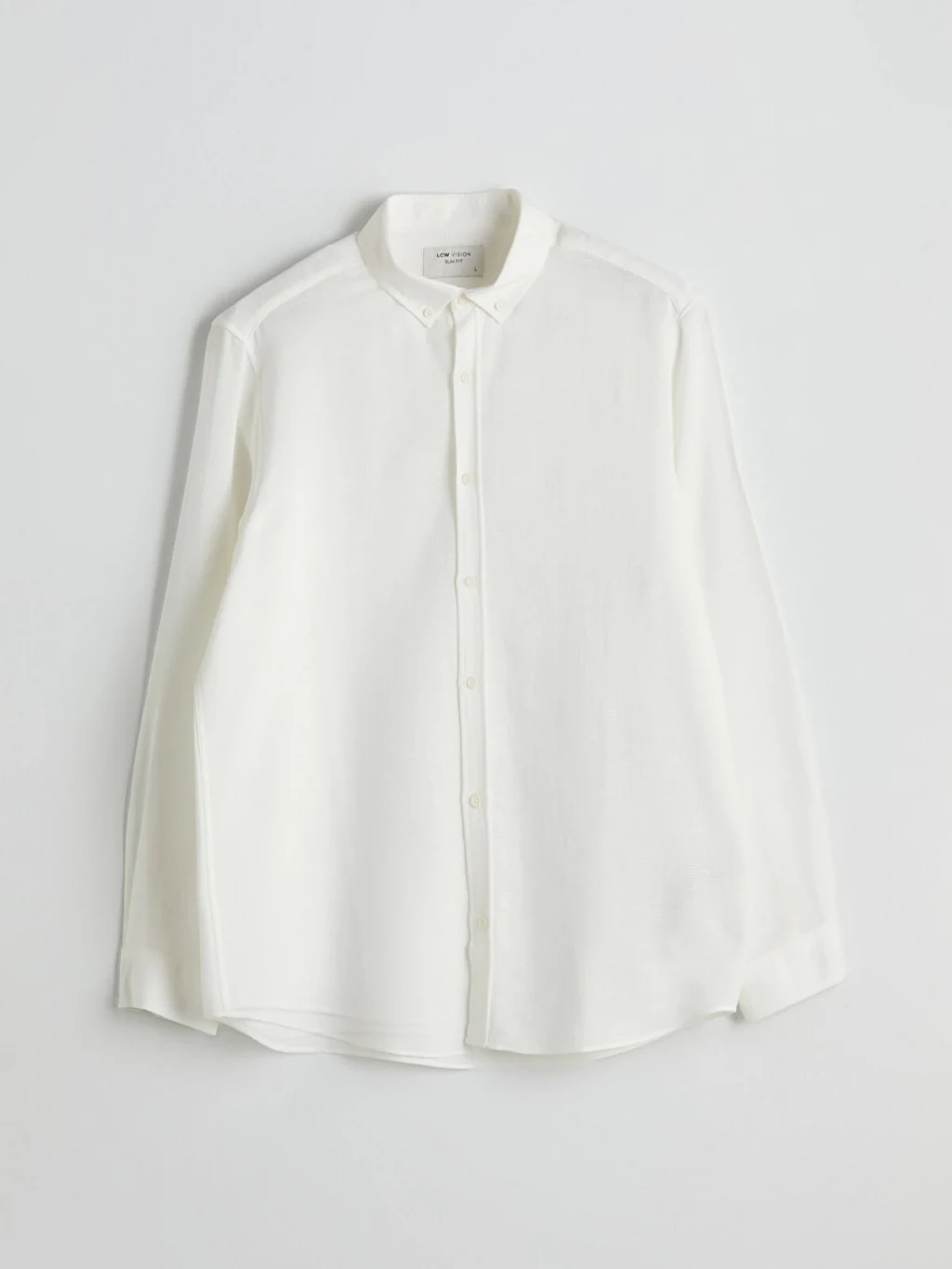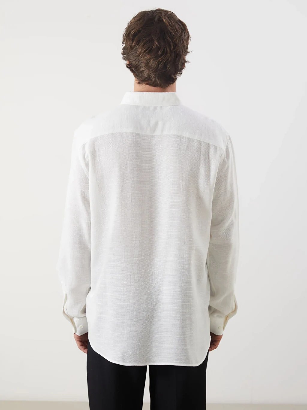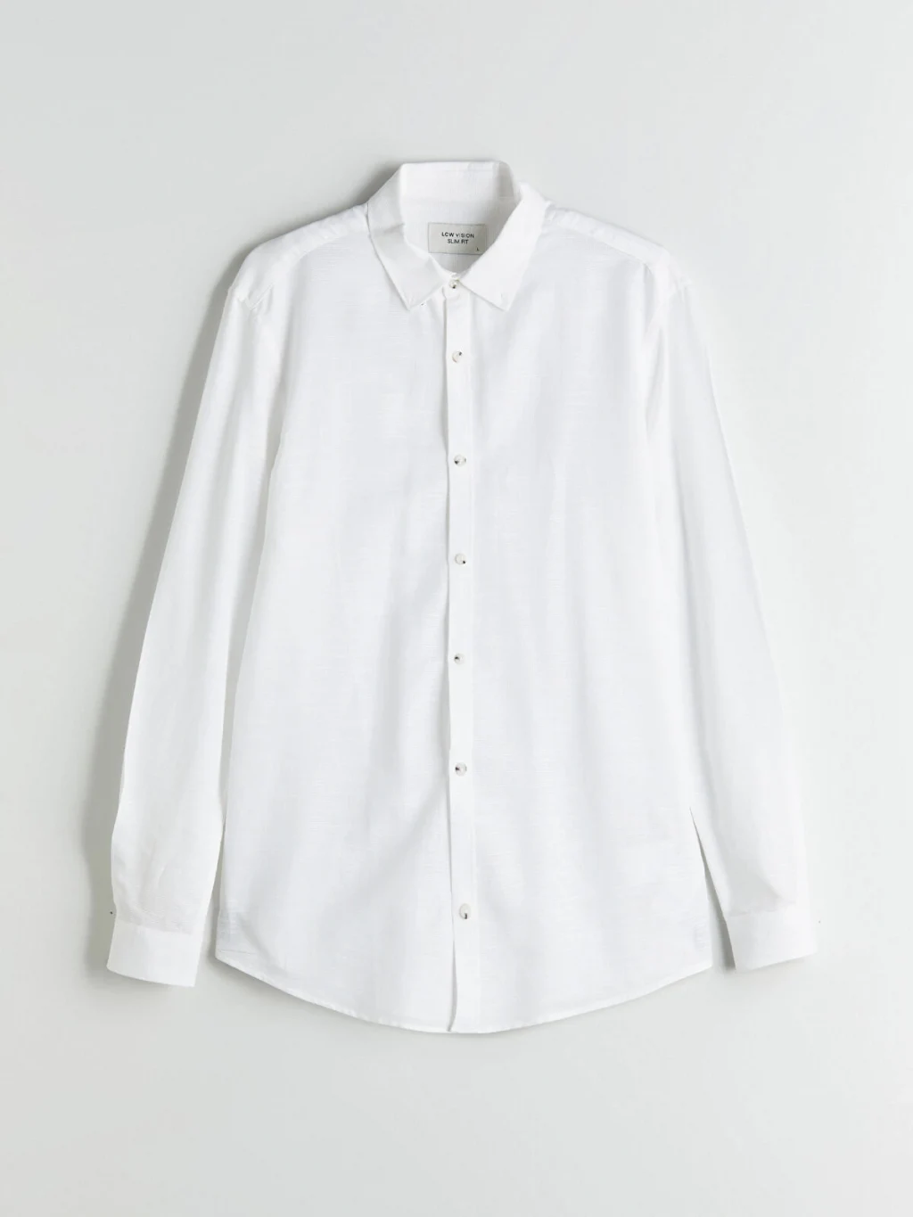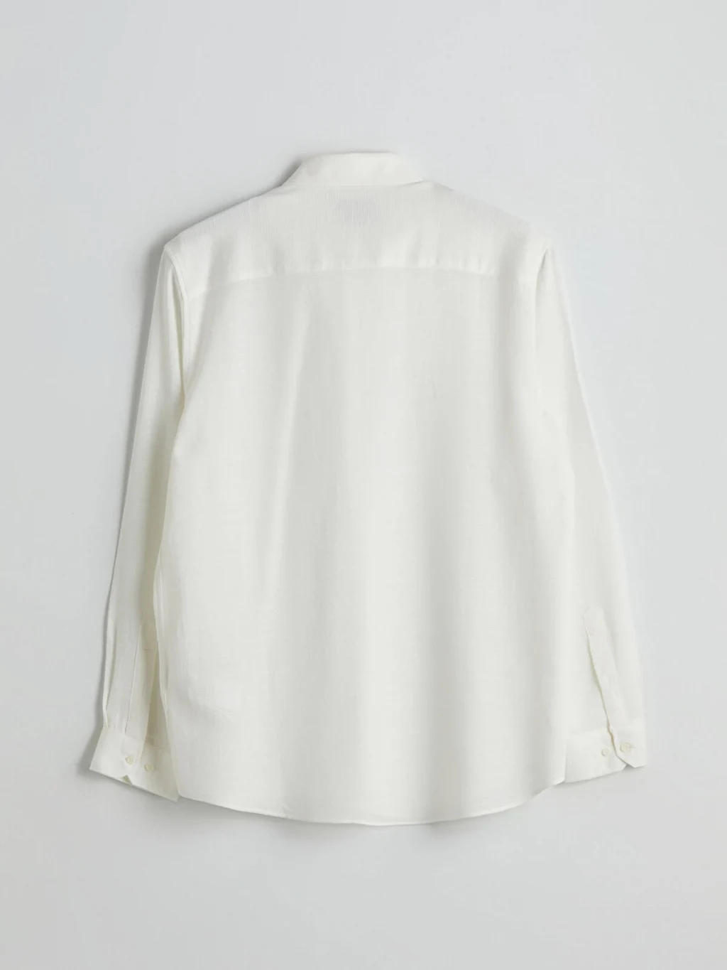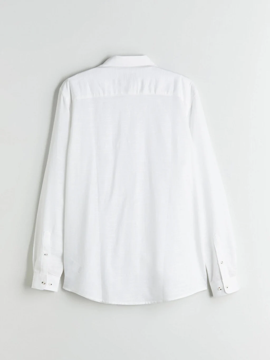 Armürlü kumaştan üretilmiş, düğmeli yakalı ve uzun kollu erkek gömlek, önden düğme kapamalıdır.
