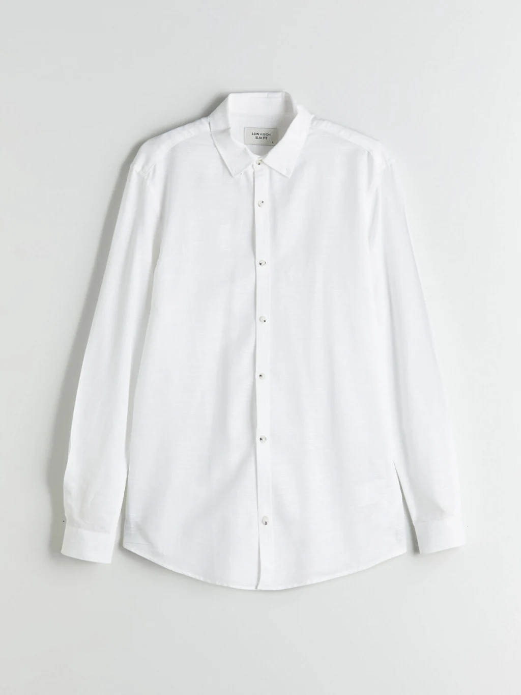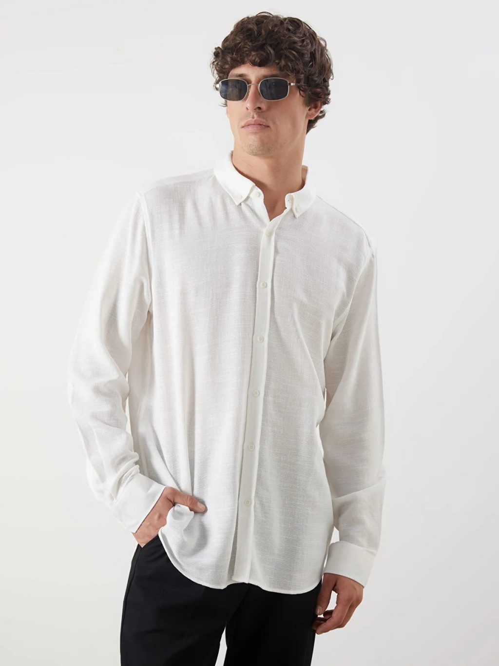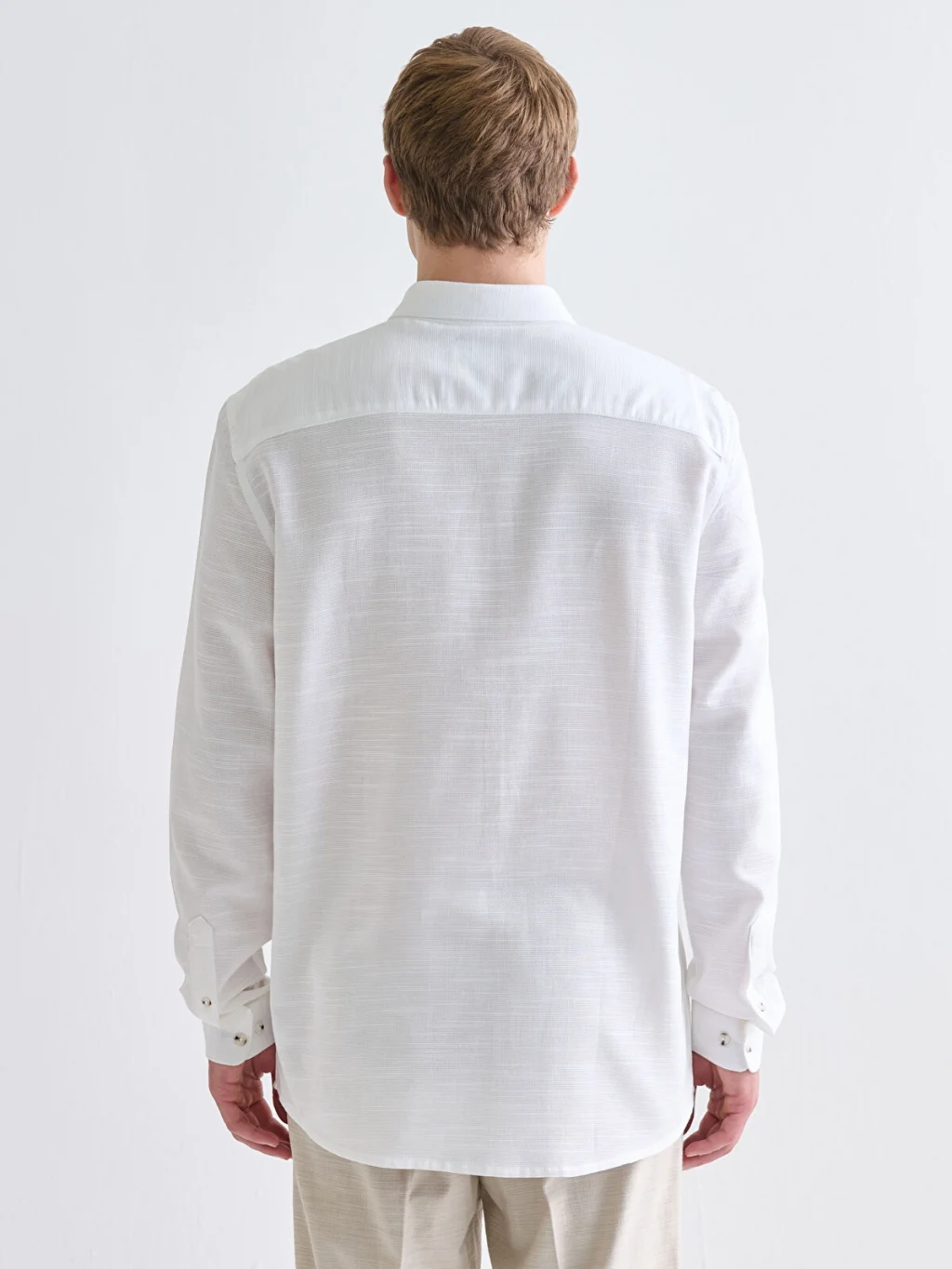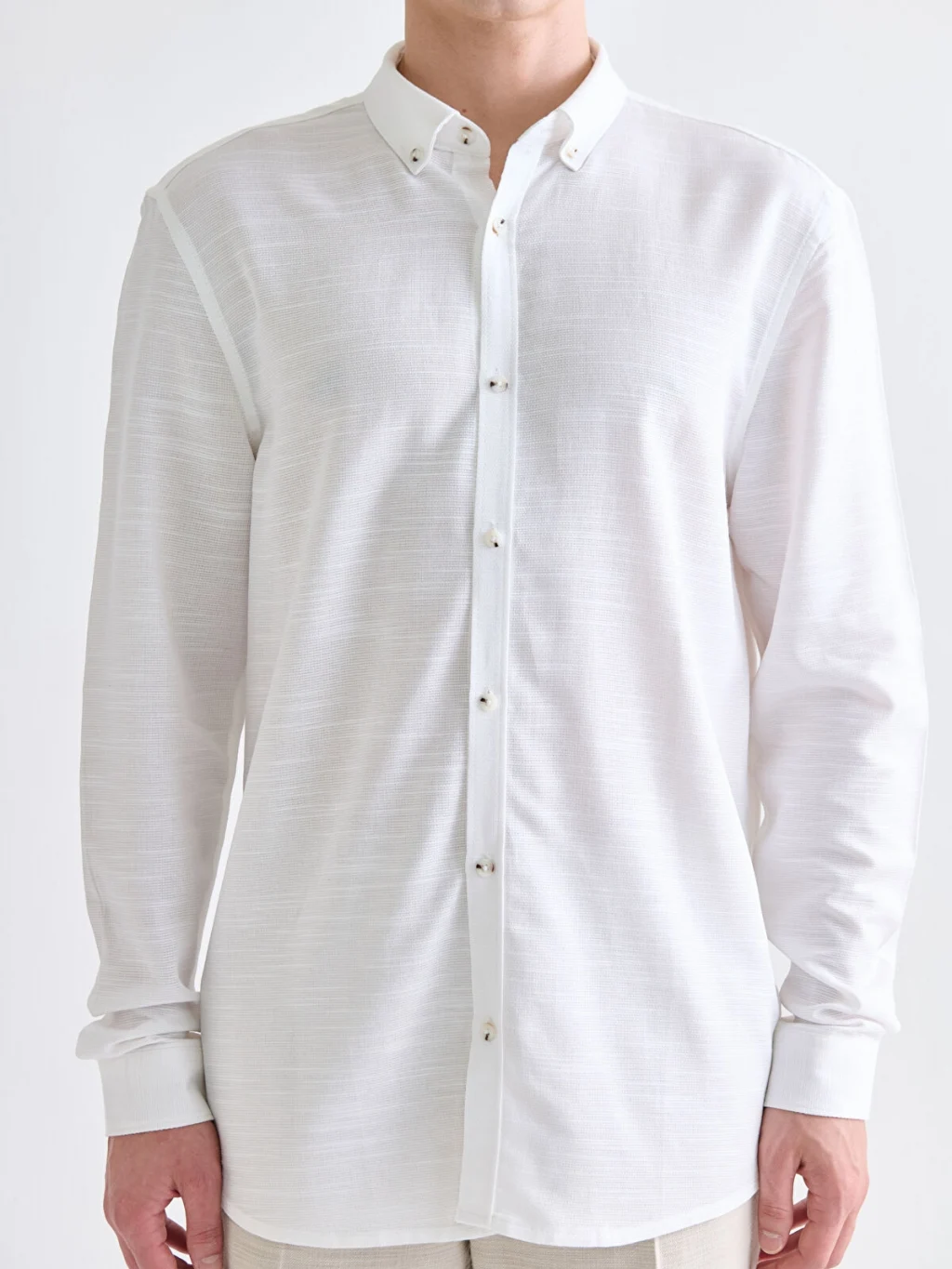 Armürlü kumaştan üretilen bu uzun kollu gömlek, düz ve şık tasarımıyla dikkat çekiyor. Kendine özgü dokusuyla tarzınıza farklı bir hava katıyor. Hem günlük kullanımda hem de özel davetlerde rahatlıkla tercih edebileceğiniz bir parça.