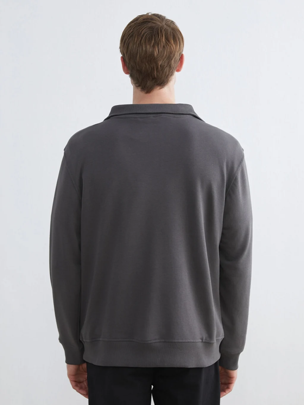 Kalın 3 iplik kumaştan üretilen erkek sweatshirt, polo yakalı ve yarım fermuar kapamalıdır. Uzun kollu ürünün etek ucu ve kol uçları ribanalıdır.