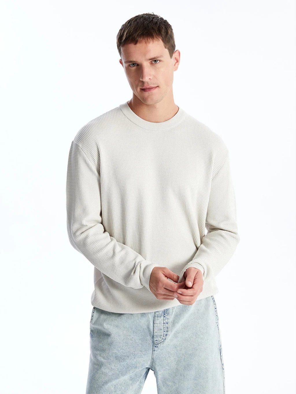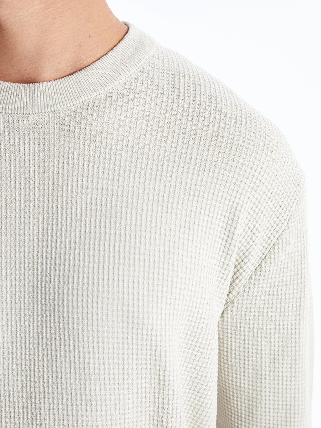 Triko kumaştan üretilmiş ve yumuşak bir dokuya sahiptir. Bisiklet yaka tasarımı, modern bir görünüm sunar ve farklı kombinlerle rahatça kullanılabilir.
