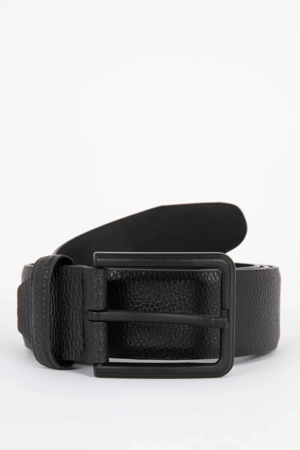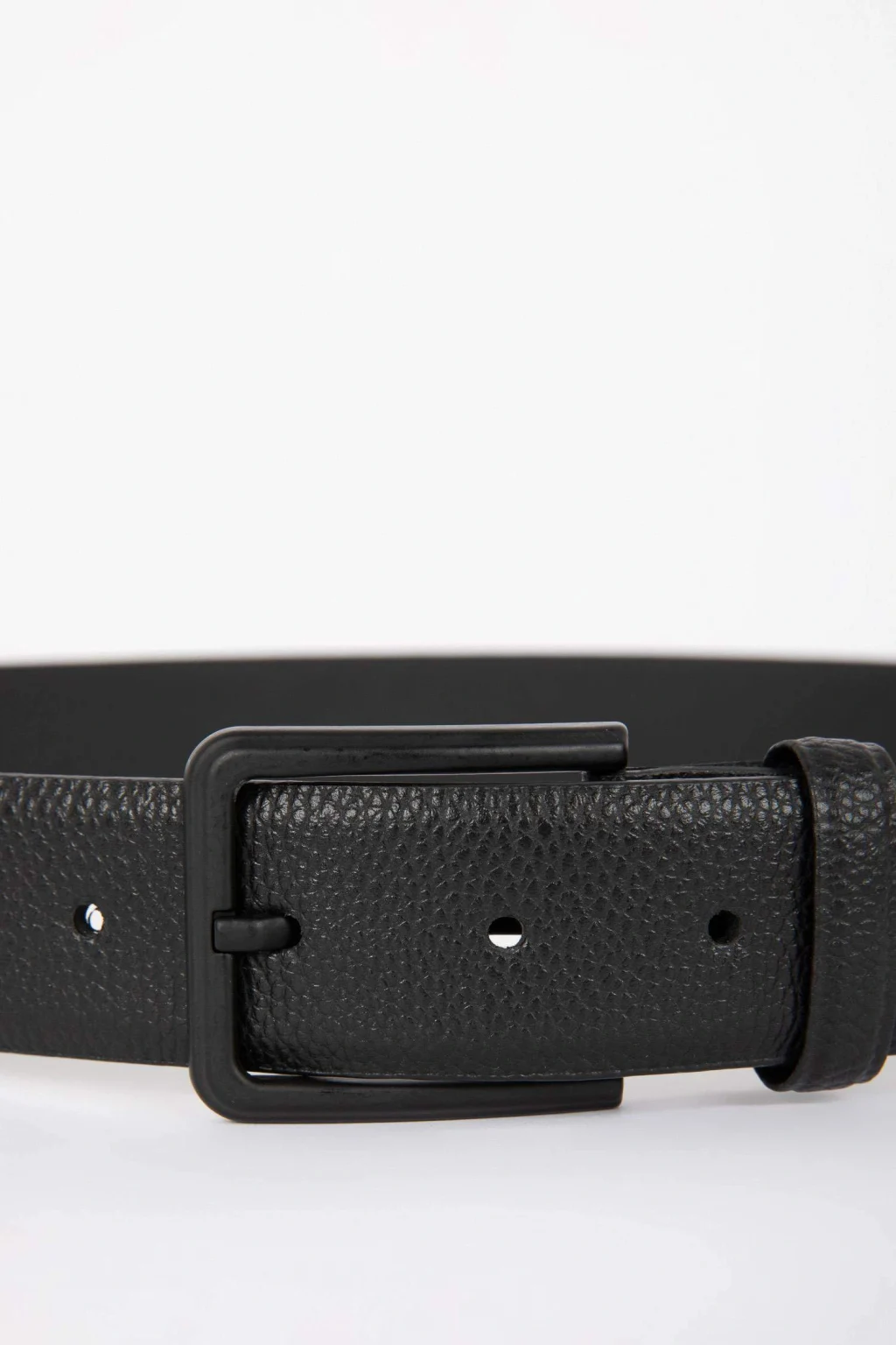 Dikdörtgen metal tokalı, 3,5 cm. ebatında, deri görünümlü materyalden üretilmiş kemer, özellikle klasik tarz takımlar, gömlekler, kumaş pantolonlar gibi parçaları şık tasarımı ile tamamlar. En trend kombinlerinizin vazgeçilmez parçası olacak ve sade tasarımı ile kullanım kolaylığı sağlayan DeFacto Erkek Dikdörtgen Toka Suni Deri Klasik Kemer.