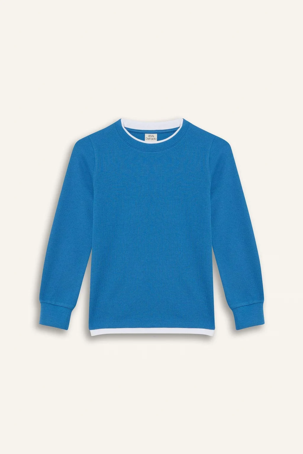 Defacto V1186 İndigo Erkek Çocuk Bisiklet Yaka Basic Düz Waffle Uzun Kollu Okul Tişörtü