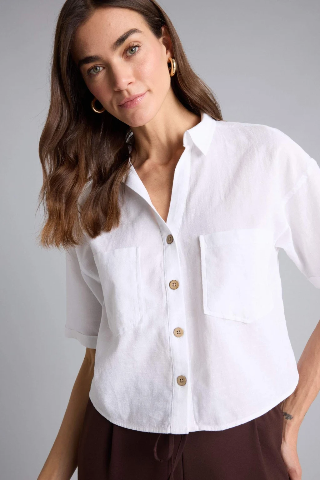 Defacto C4784AXKH176 Haki Cropped Fıt Akışkan Kumaş Gömlek