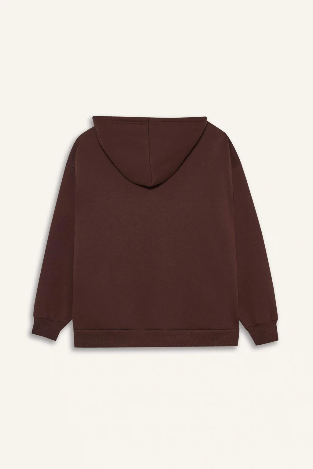 Oversize geniş kalıbıyla rahatlık ve şıklığı bir arada sunan kapüşonlu fermuarlı sweatshirt, günlük kombinlere modern bir dokunuş katıyor. Yumuşak kumaşıyla konforlu bir kullanım sağlar.