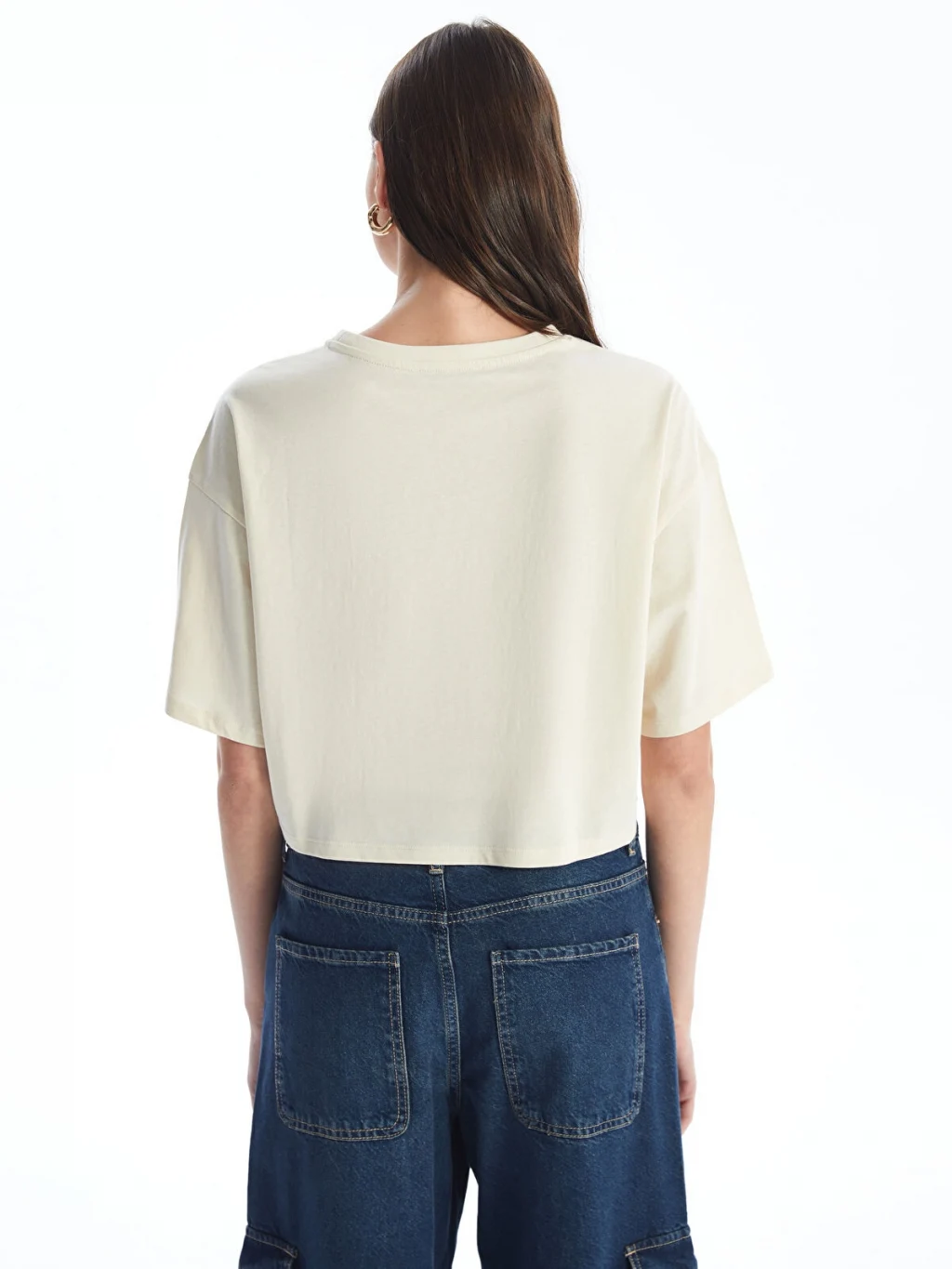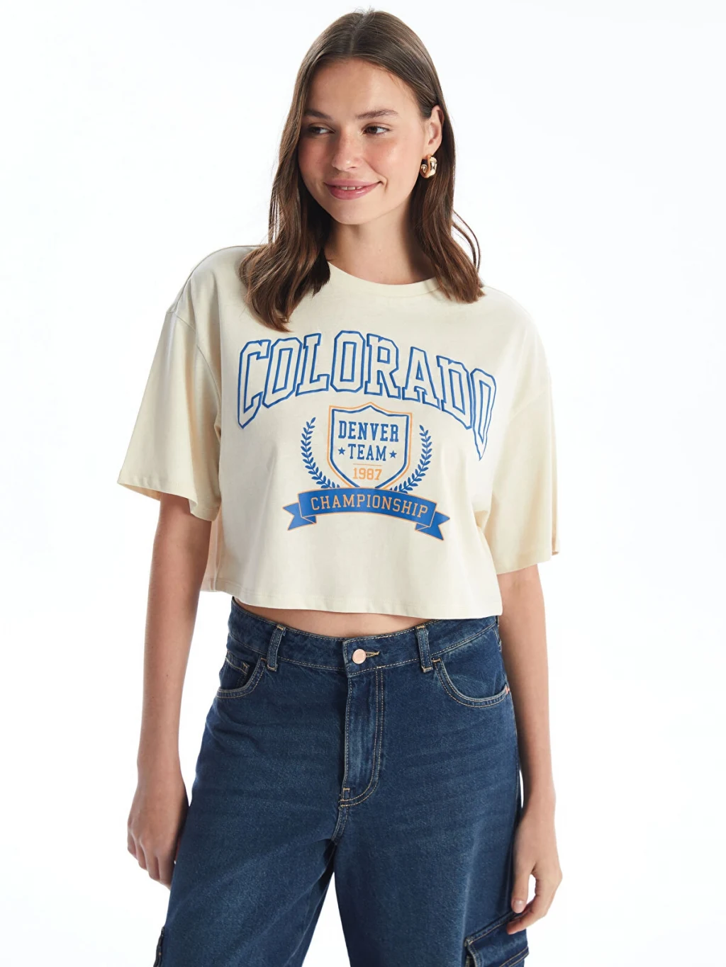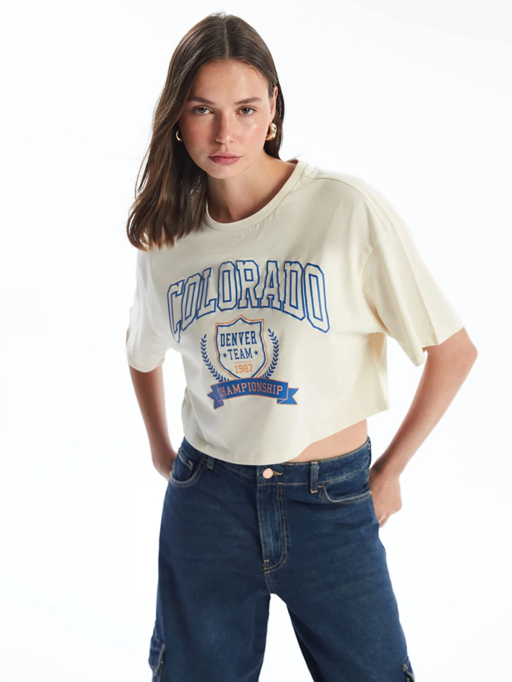 Penye kumaştan üretilen baskılı crop, hafif kumaşı ile rahat bir giyim deneyimi sunar. Crop kesimi ve eğlenceli baskılı tasarımı ile stilinizi tamamlayan kısa kollu tişört, yaz aylarında rahatlıkla tercih edilebilirsiniz.