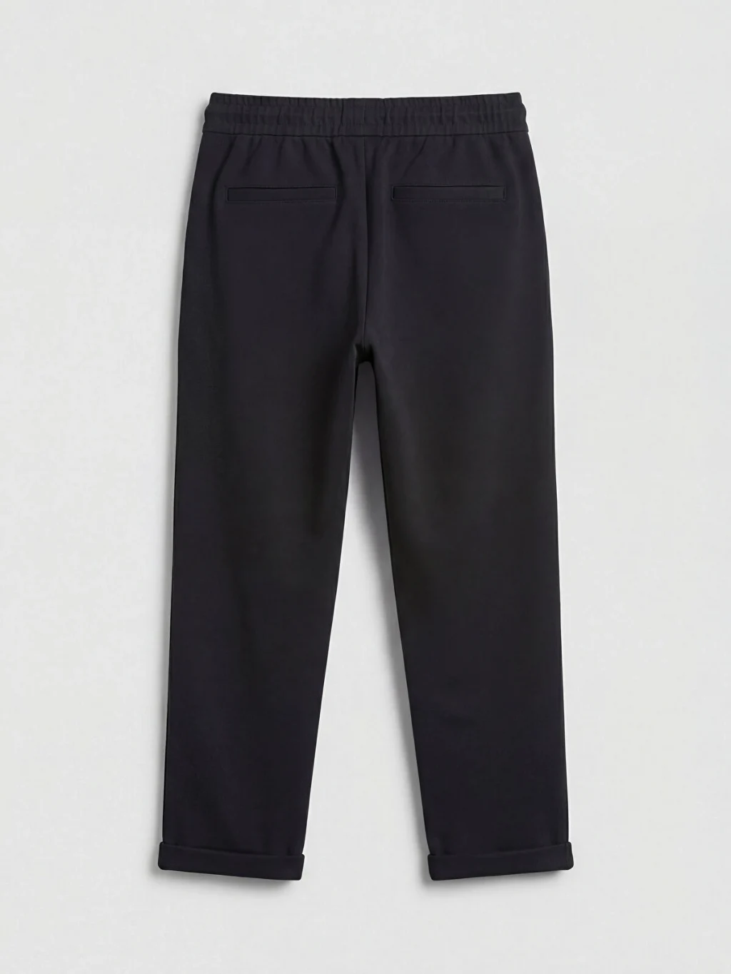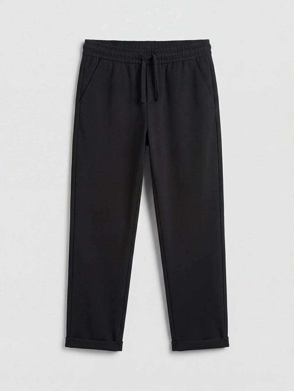 Beli lastikli ve ayarlanabilir ipli erkek çocuk pantolon, standart kalıba sahiptir ve cepleri bulunmaktadır.
