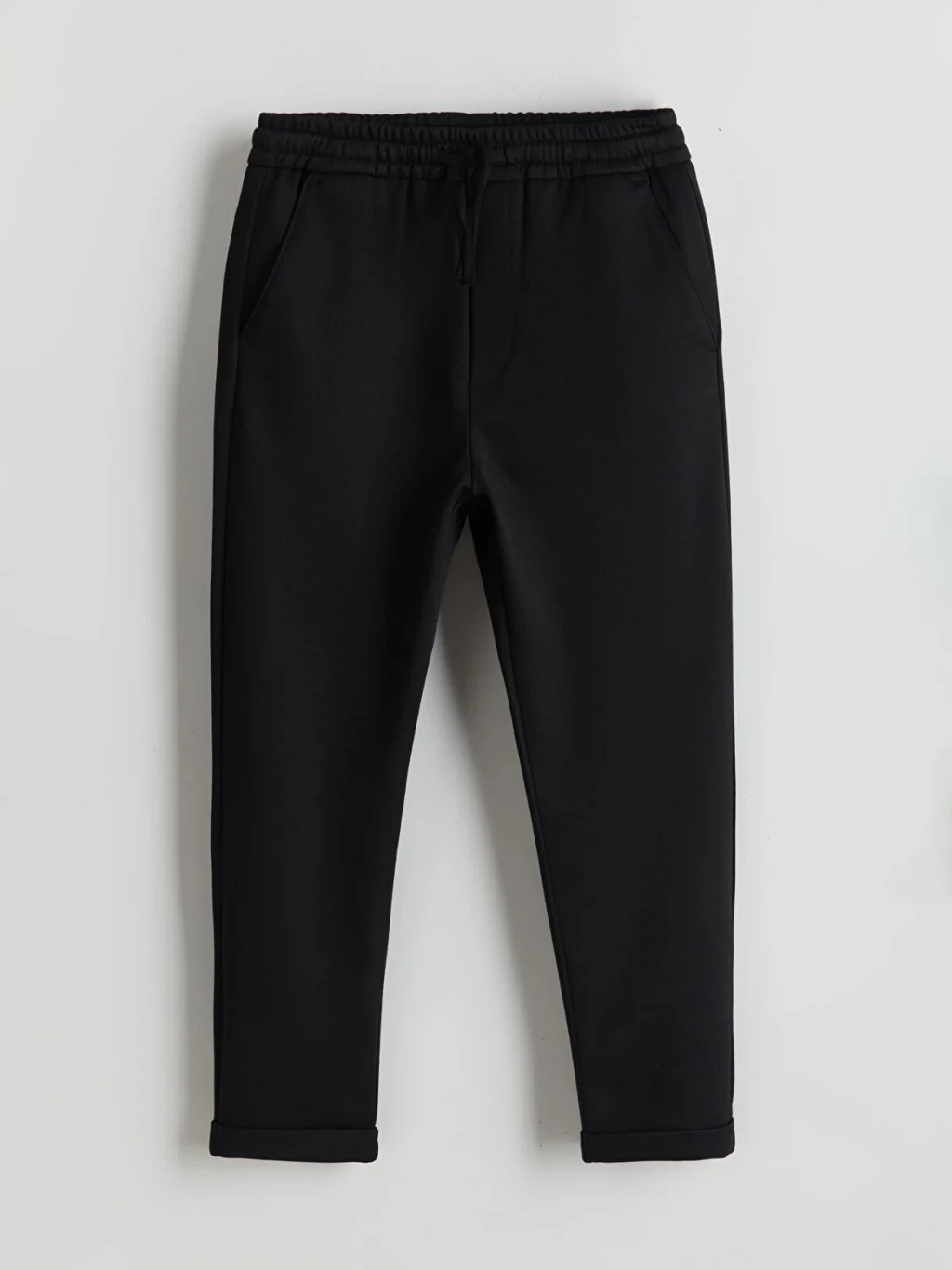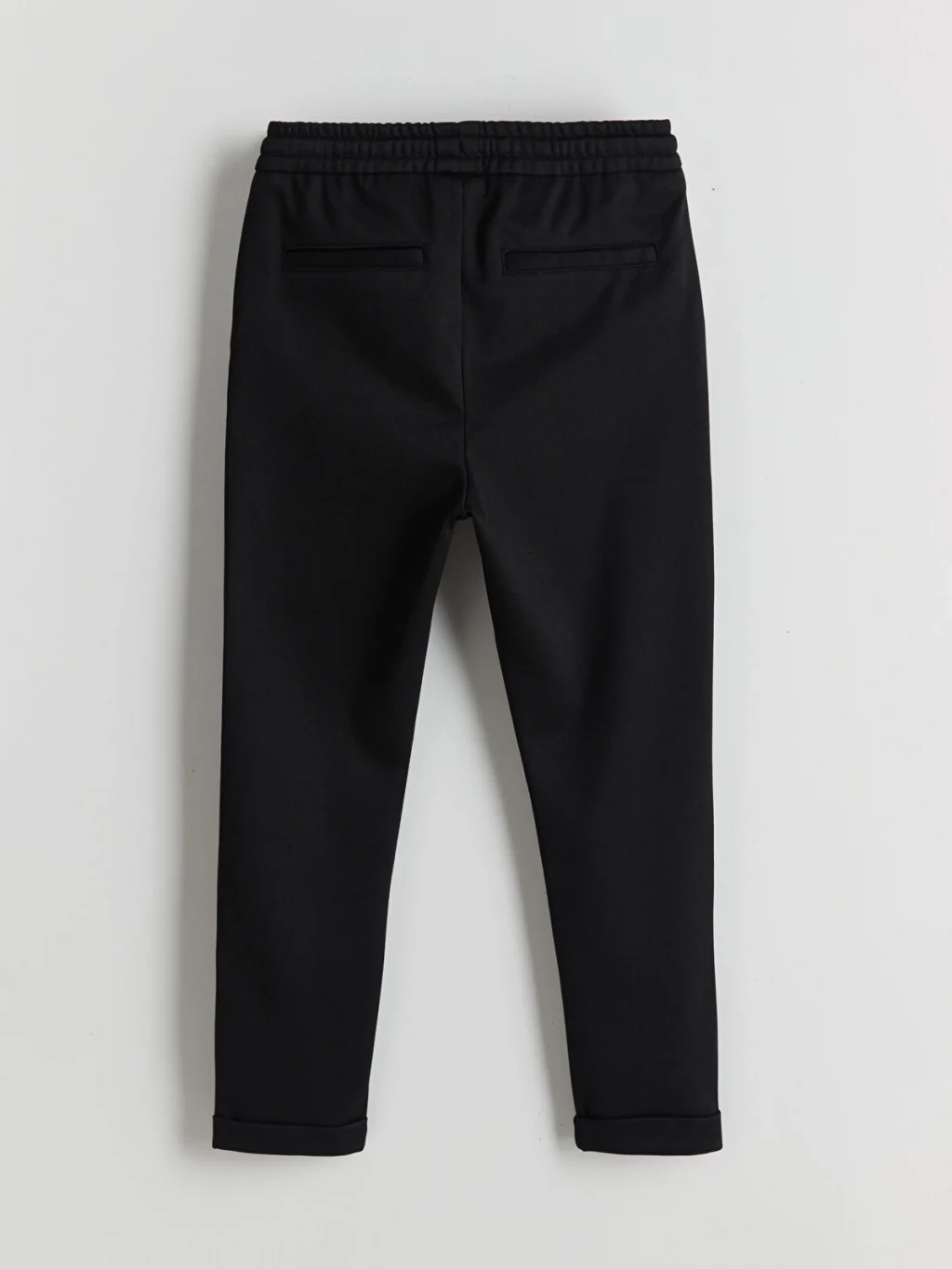 Viskon karışımlı esnek kumaştan yapılan pantolon, beli lastikli ve ayarlanabilir ipli tasarımı sayesinde rahatça giyilebilir ve hareket özgürlüğü sunar. Şıklığı ve rahatlığı bir araya getiren bu pantolon, çocukların vazgeçilmezi olacak.