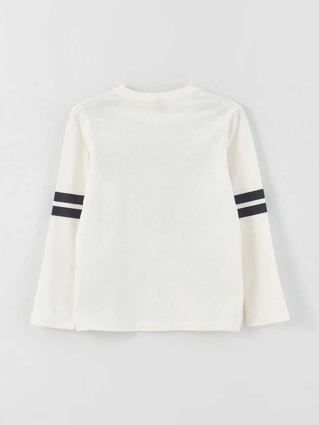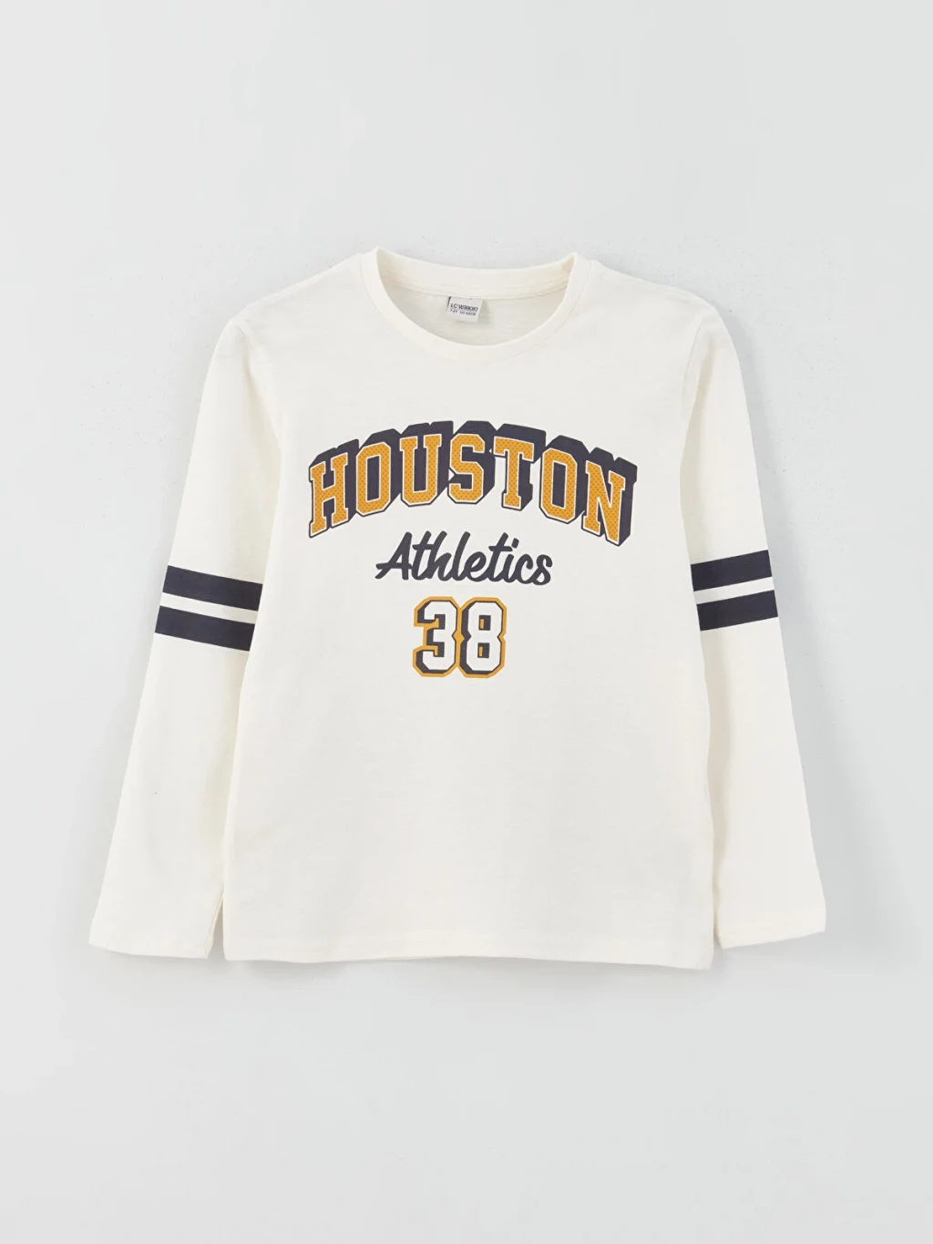 LCW Kids Lacivert Bisiklet Yaka Baskılı Uzun Kollu Erkek Çocuk Tişört