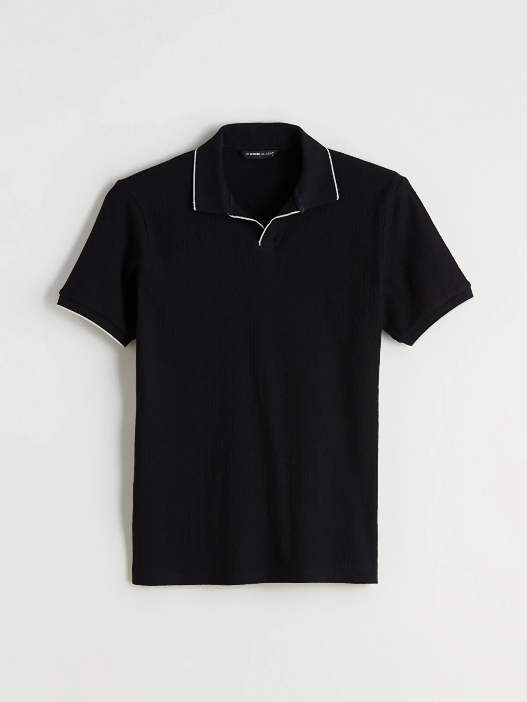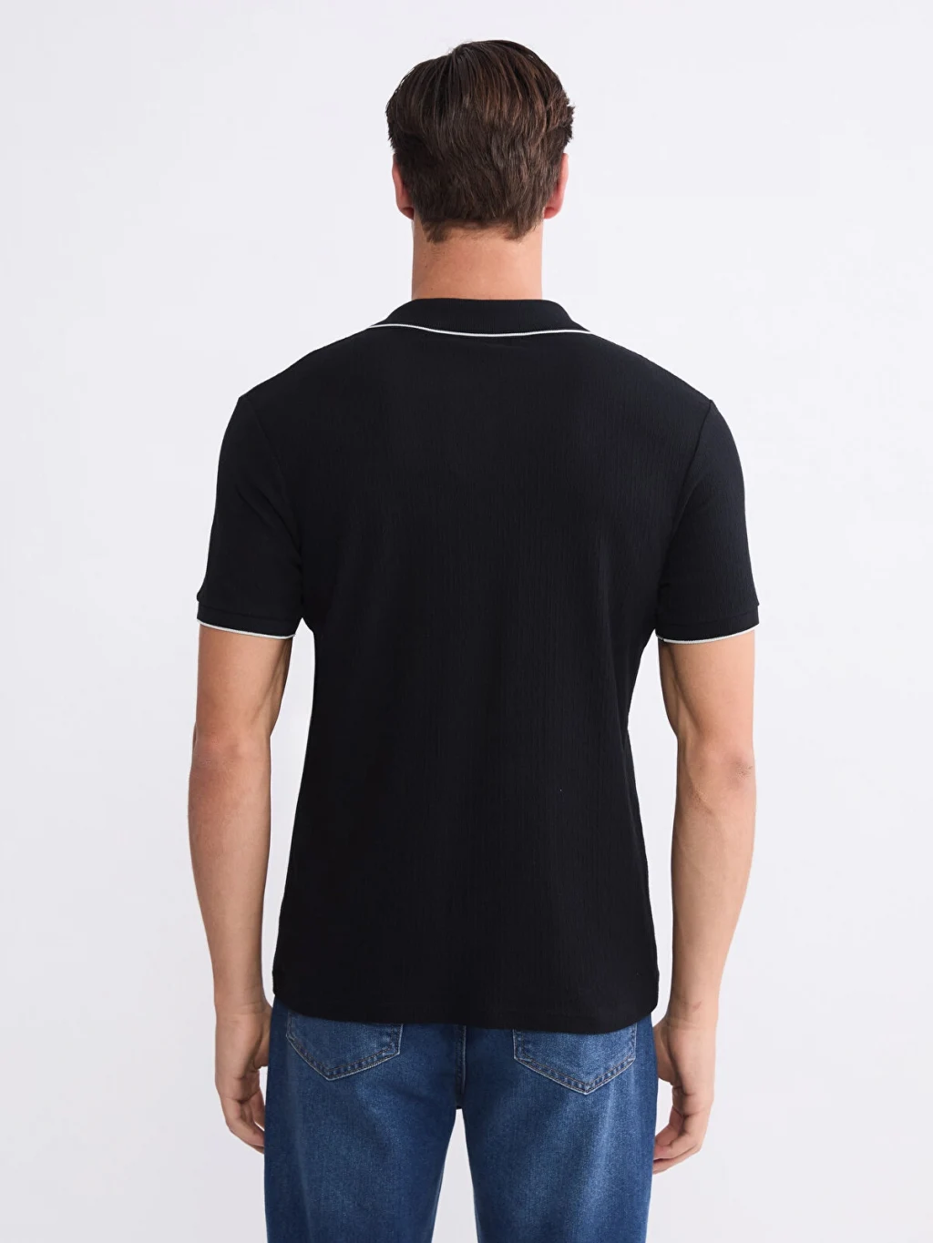 Standart kalıp, polo yakalı erkek tişört, %100 pamuklu strüktürlü kumaştan üretilmiştir. Kısa kollu olup, yaka ve kol ucu kenarları biyelidir.