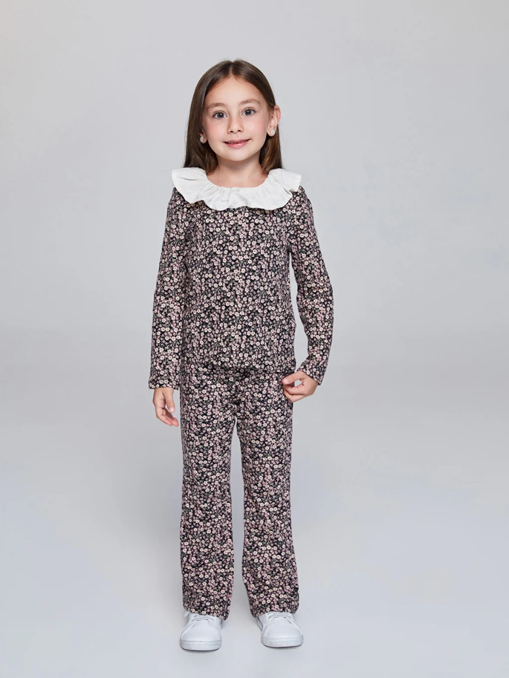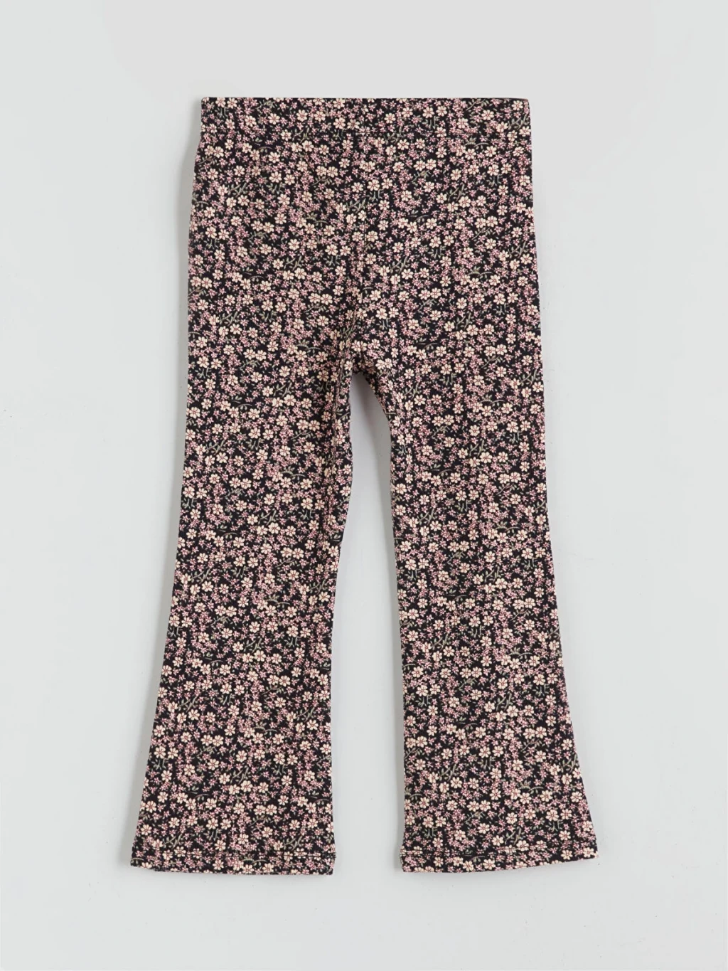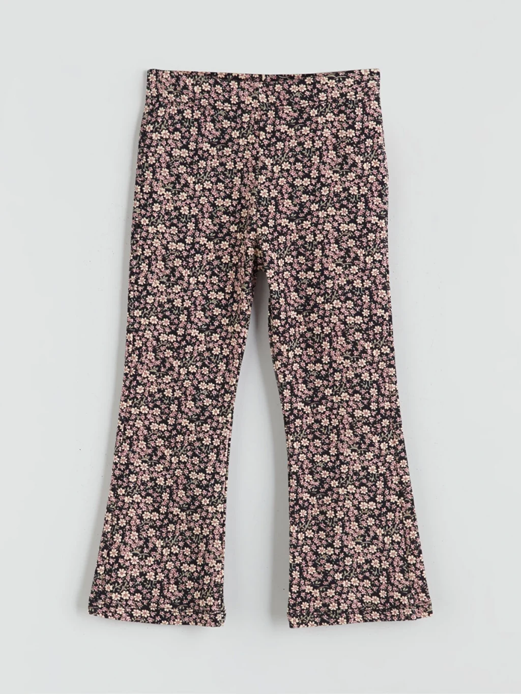 Beli lastikli, çiçek desenli kız çocuk eşofman altı, kaşkorse kumaştan üretilmiştir ve ispanyol paça kesimlidir.