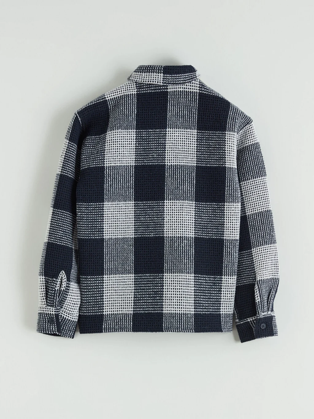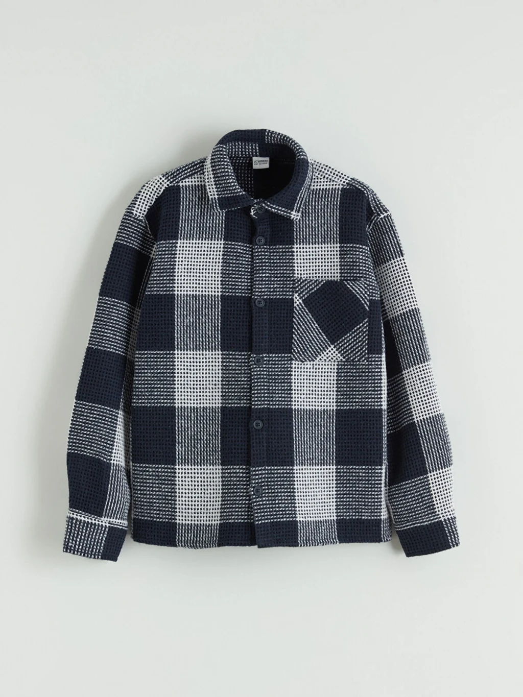 Flanel kumaştan üretilen kareli desenli erkek çocuk gömlek, uzun kolludur. Tek göğüs cepli ve önden düğme kapamalıdır.