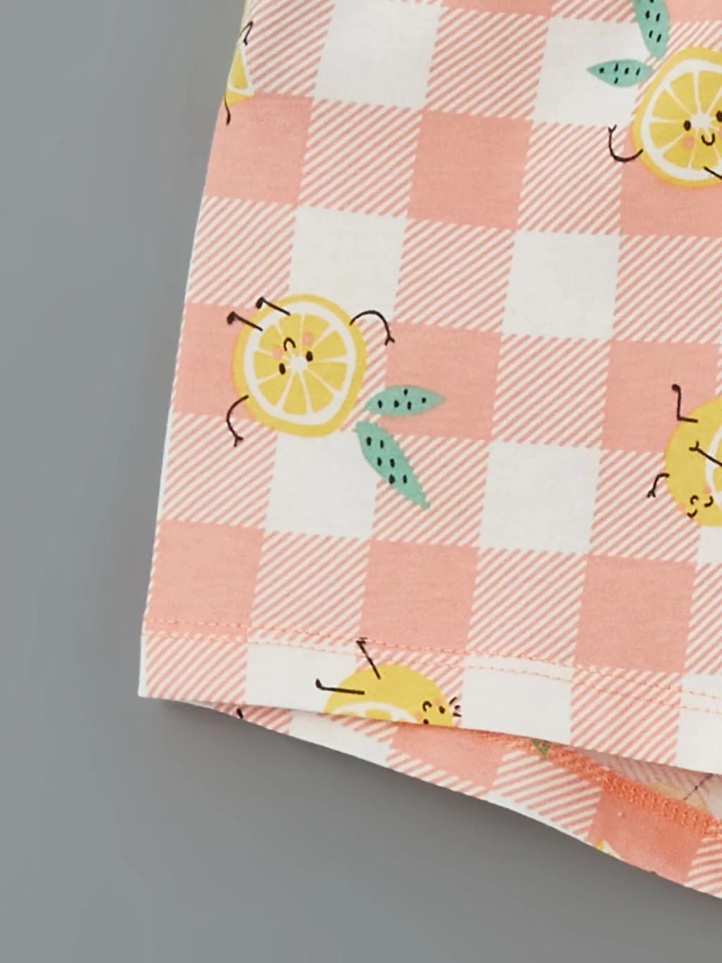 Rahat kalıp pijama üst ve standart kalıp şortlu pijama alttan oluşan takım, pamuklu penye kumaştan üretilmiştir. Limon ve yazı baskılı tasarımıyla neşeli ve enerjik bir görünüm sunar. Yaz aylarında serin ve konforlu uyku sağlar.