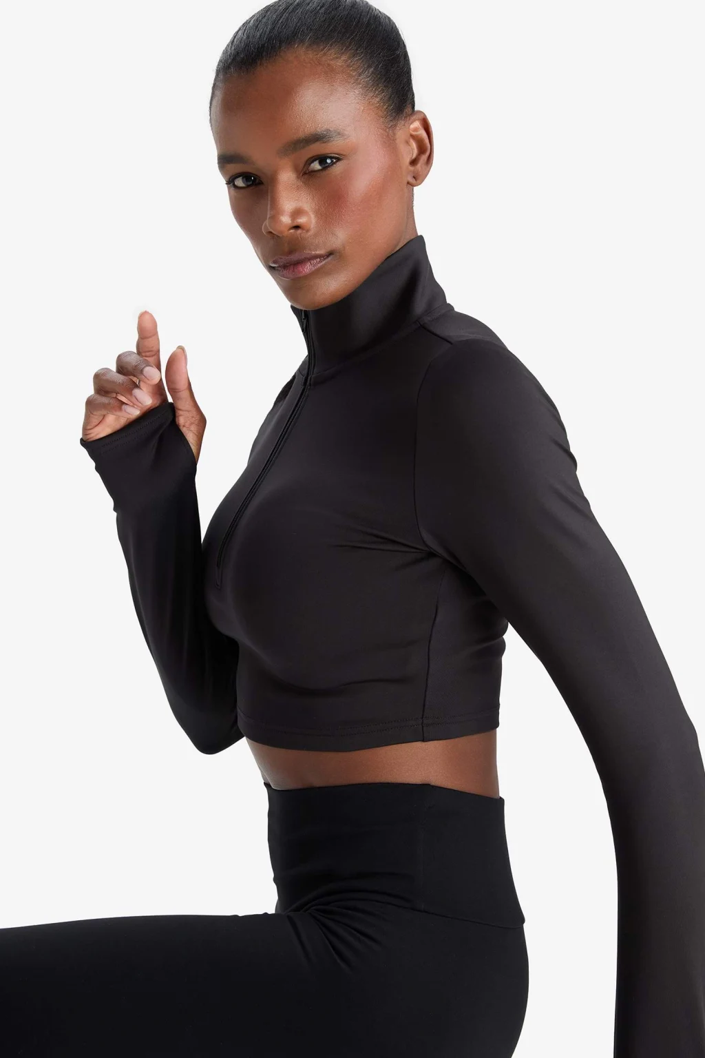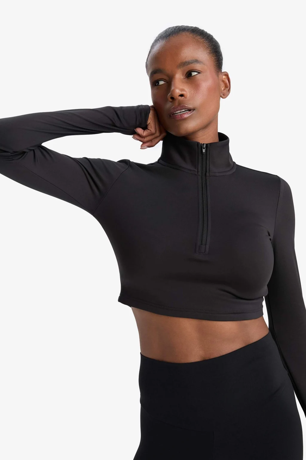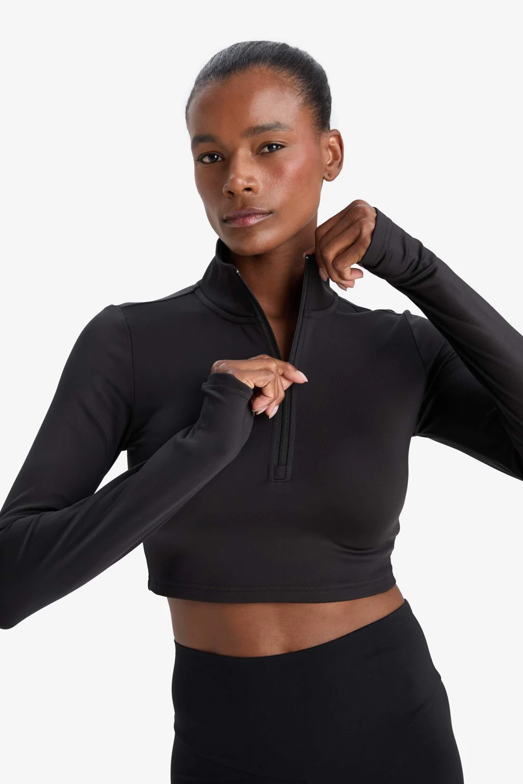 DeFactoFit slim fit tişört, dar kesimi ve fermuarlı dik yaka tasarımıyla şık ve sportif bir görünüm sunar. Uzun kollu yapısıyla serin havalar için ideal bir tercihtir.
