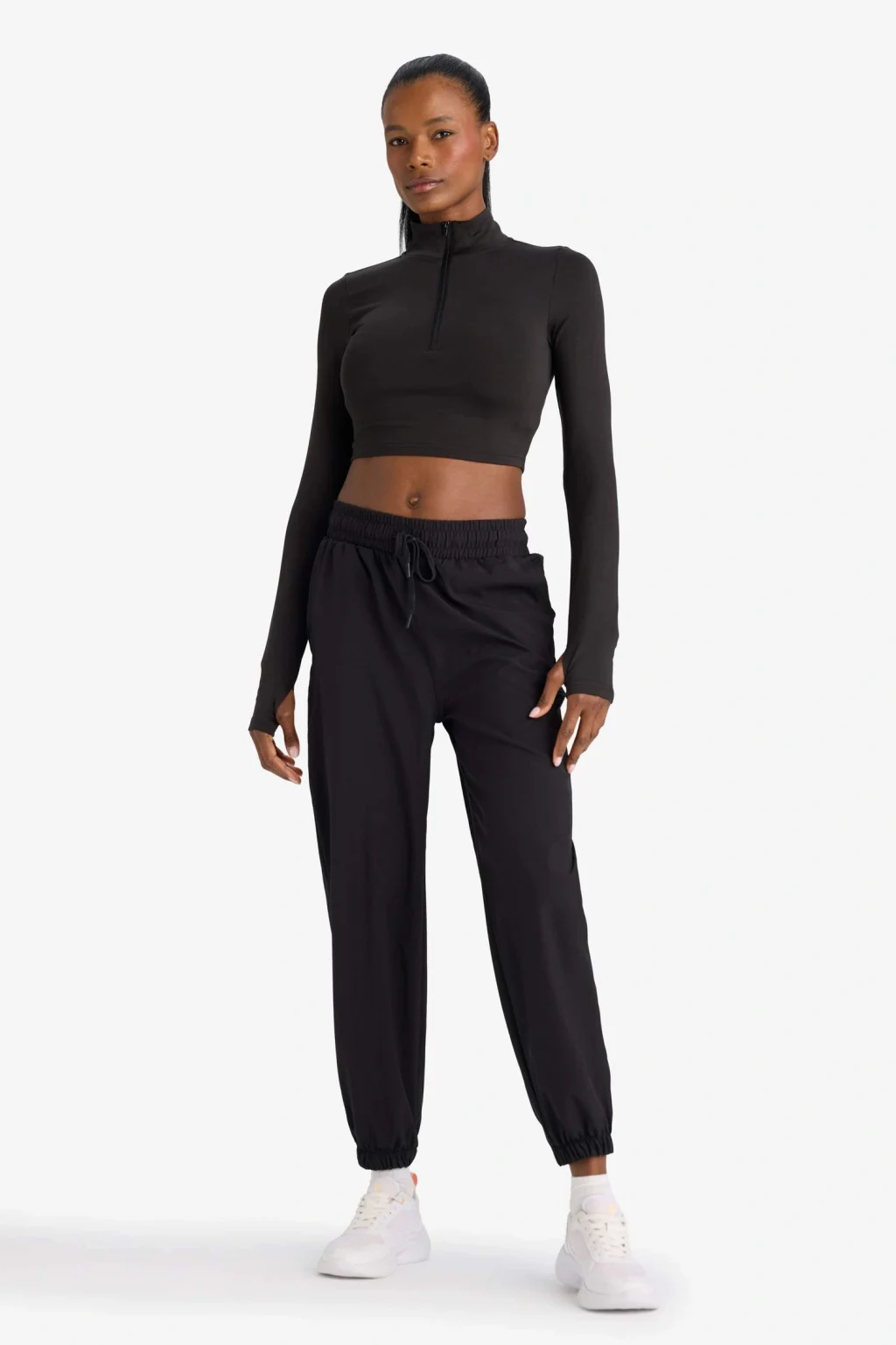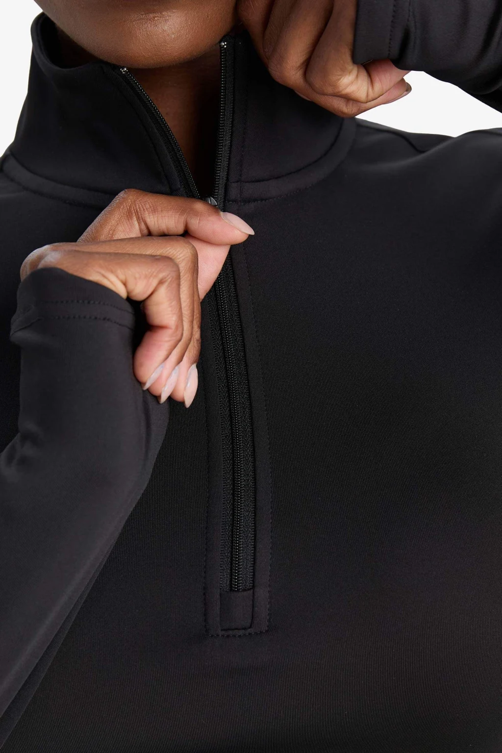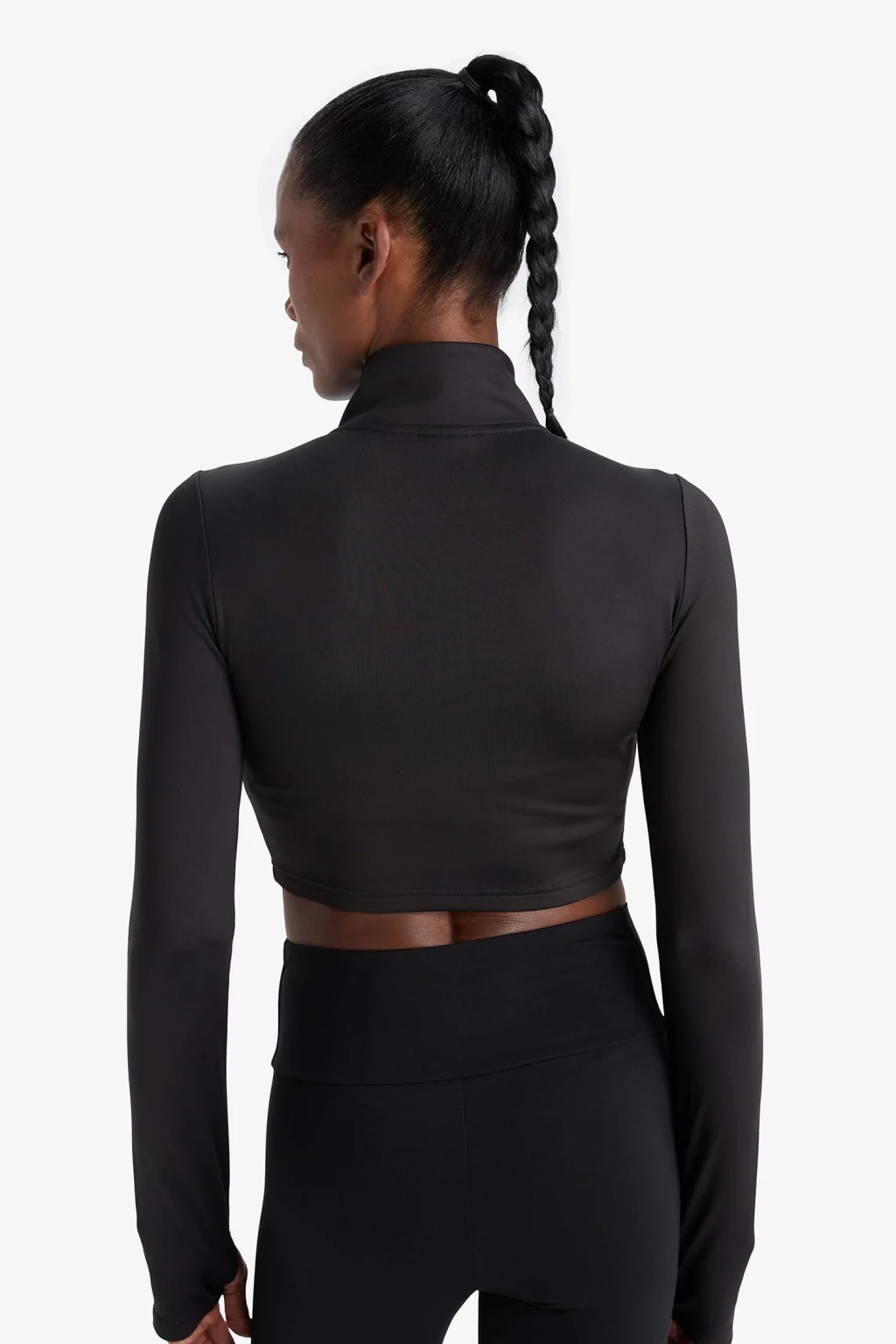DeFactoFit slim fit tişört, dar kesimi ve fermuarlı dik yaka tasarımıyla şık ve sportif bir görünüm sunar. Uzun kollu yapısıyla serin havalar için ideal bir tercihtir.