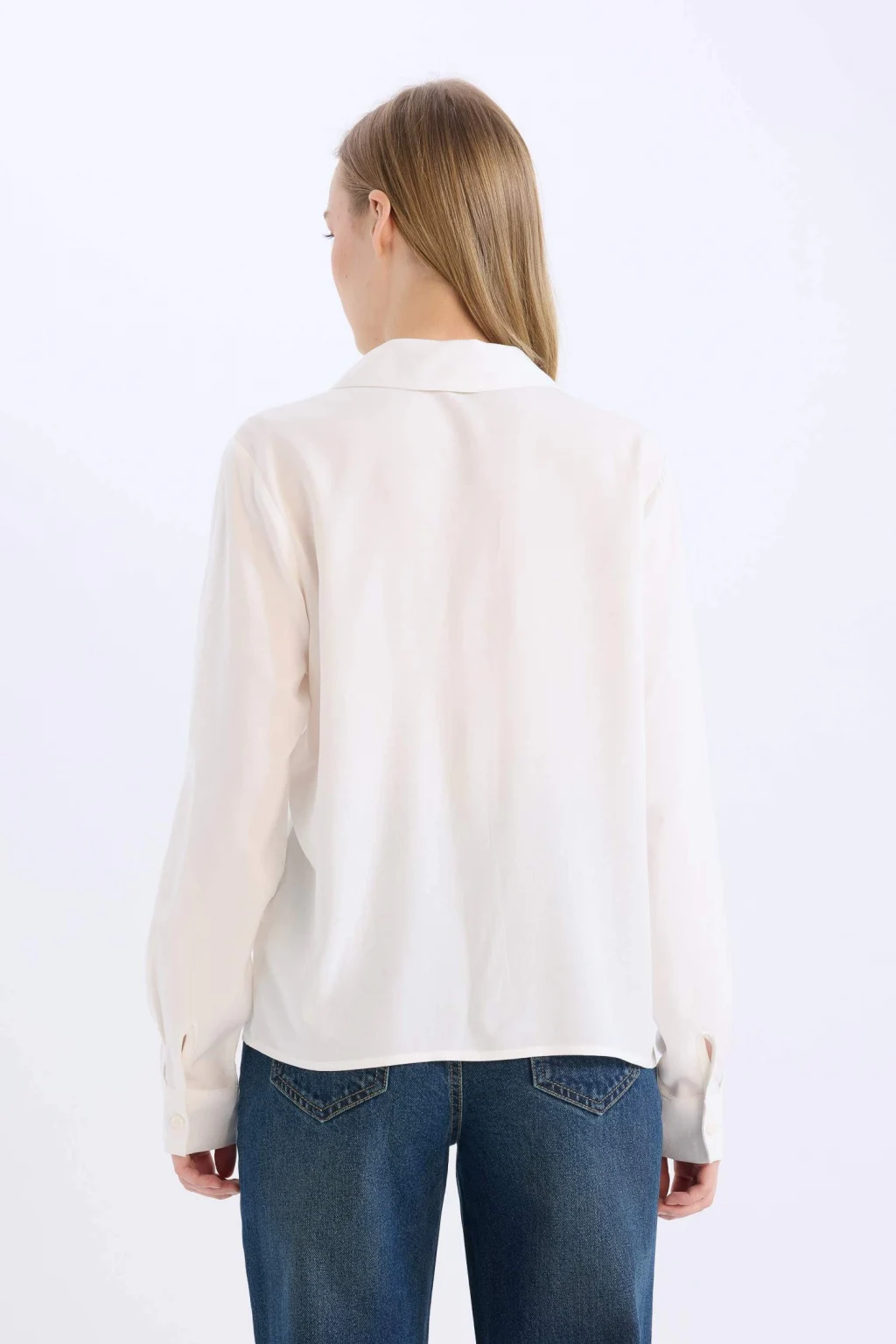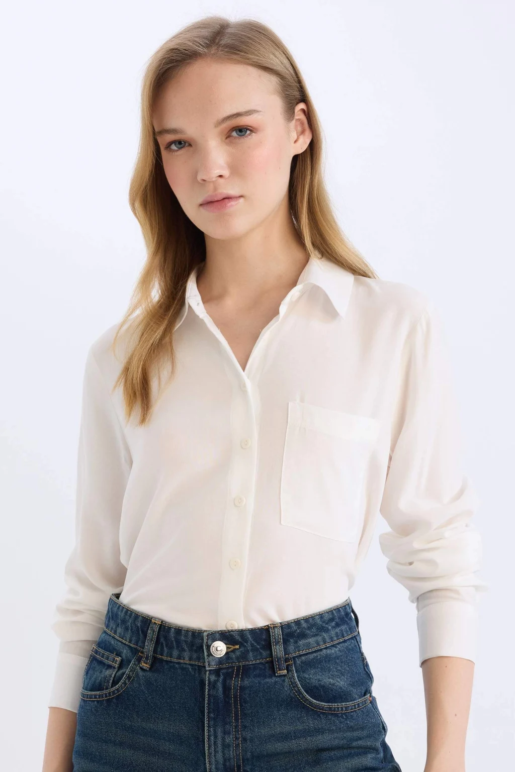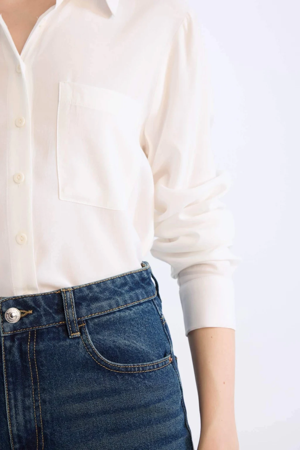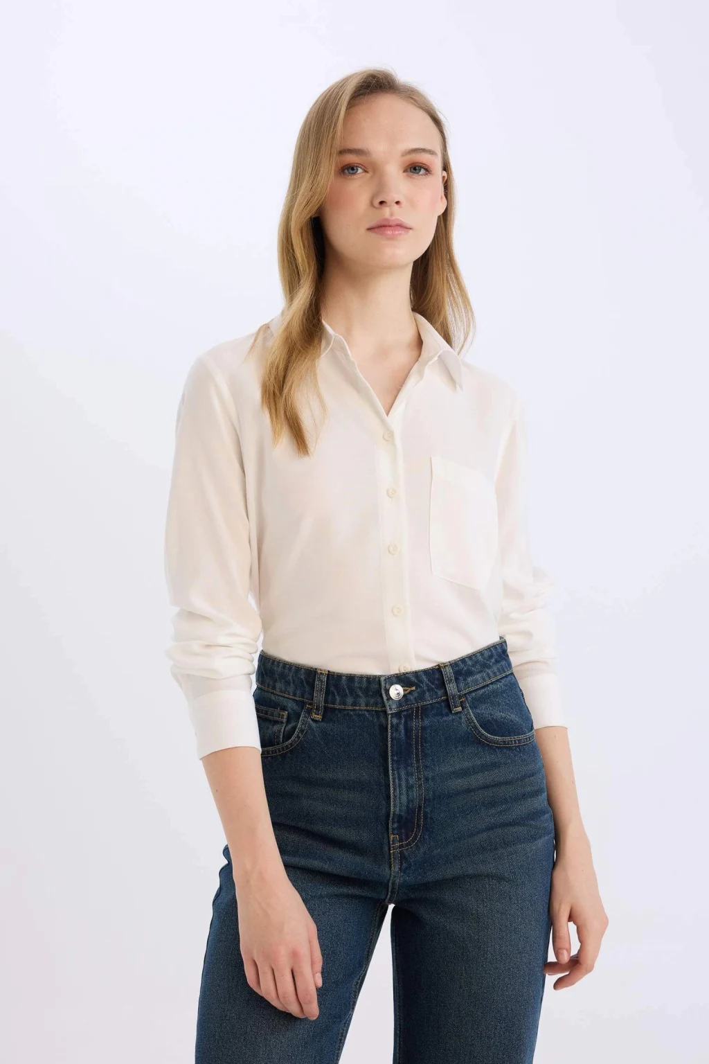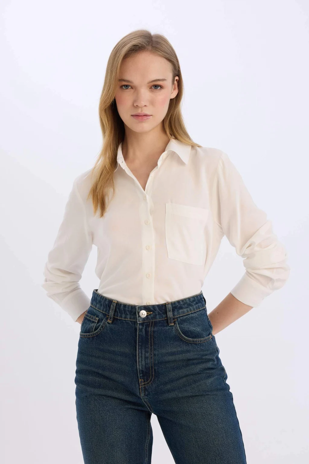Defacto W3614 Beyaz Regular Fit Basic Düz Uzun Kollu Gömlek