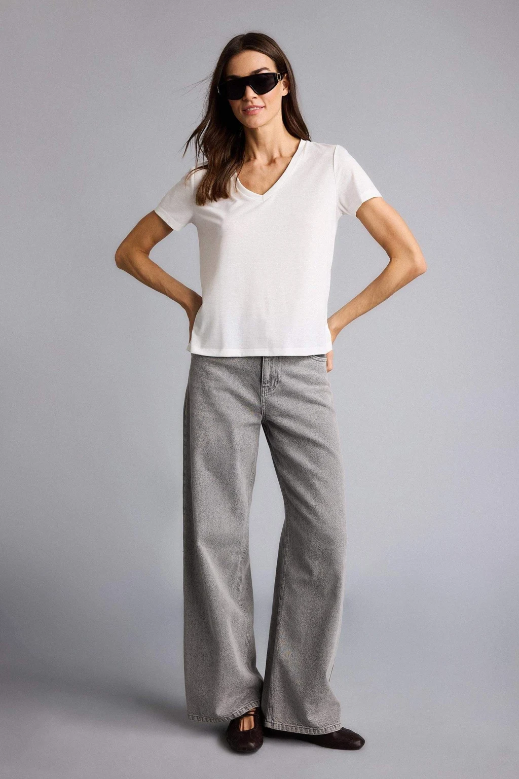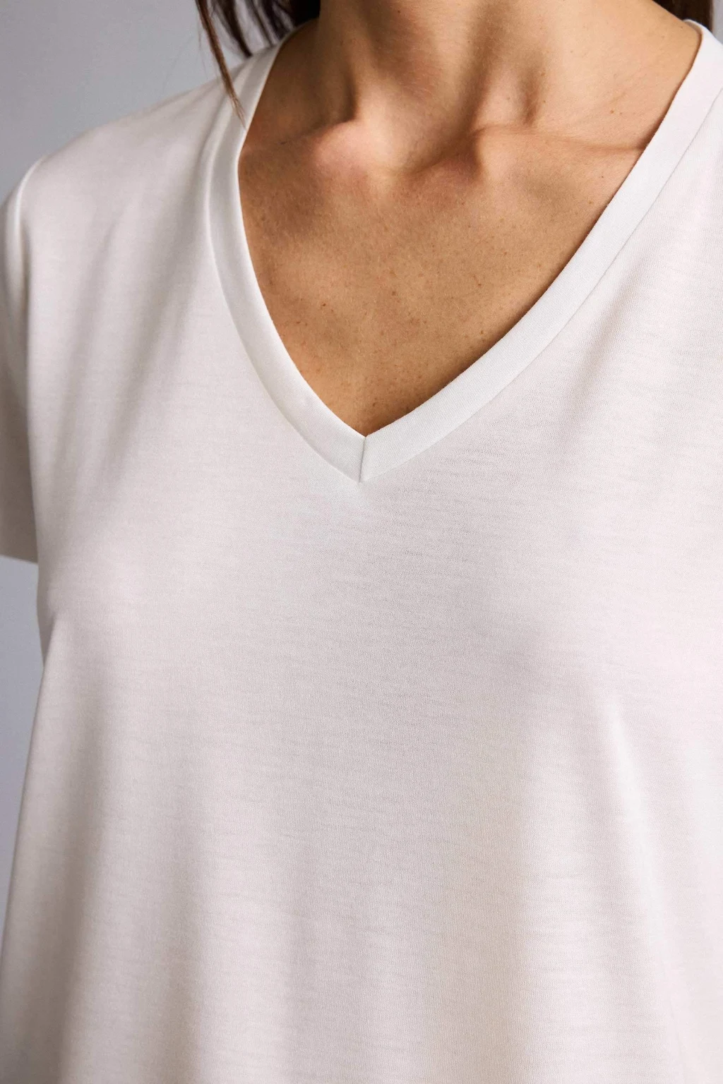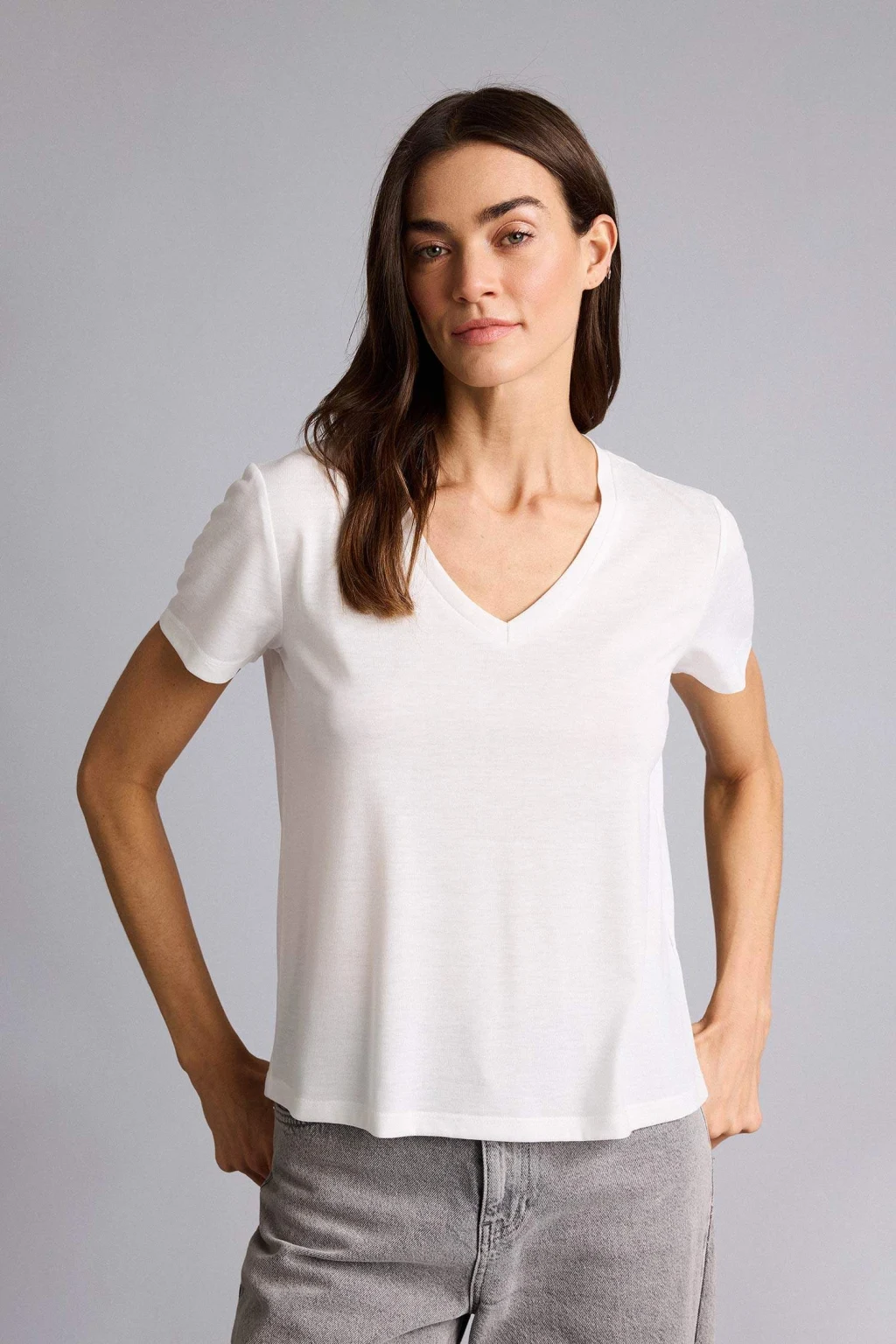 LCW Vision Beyaz V Yaka Düz Kısa Kollu Kadın Tişört