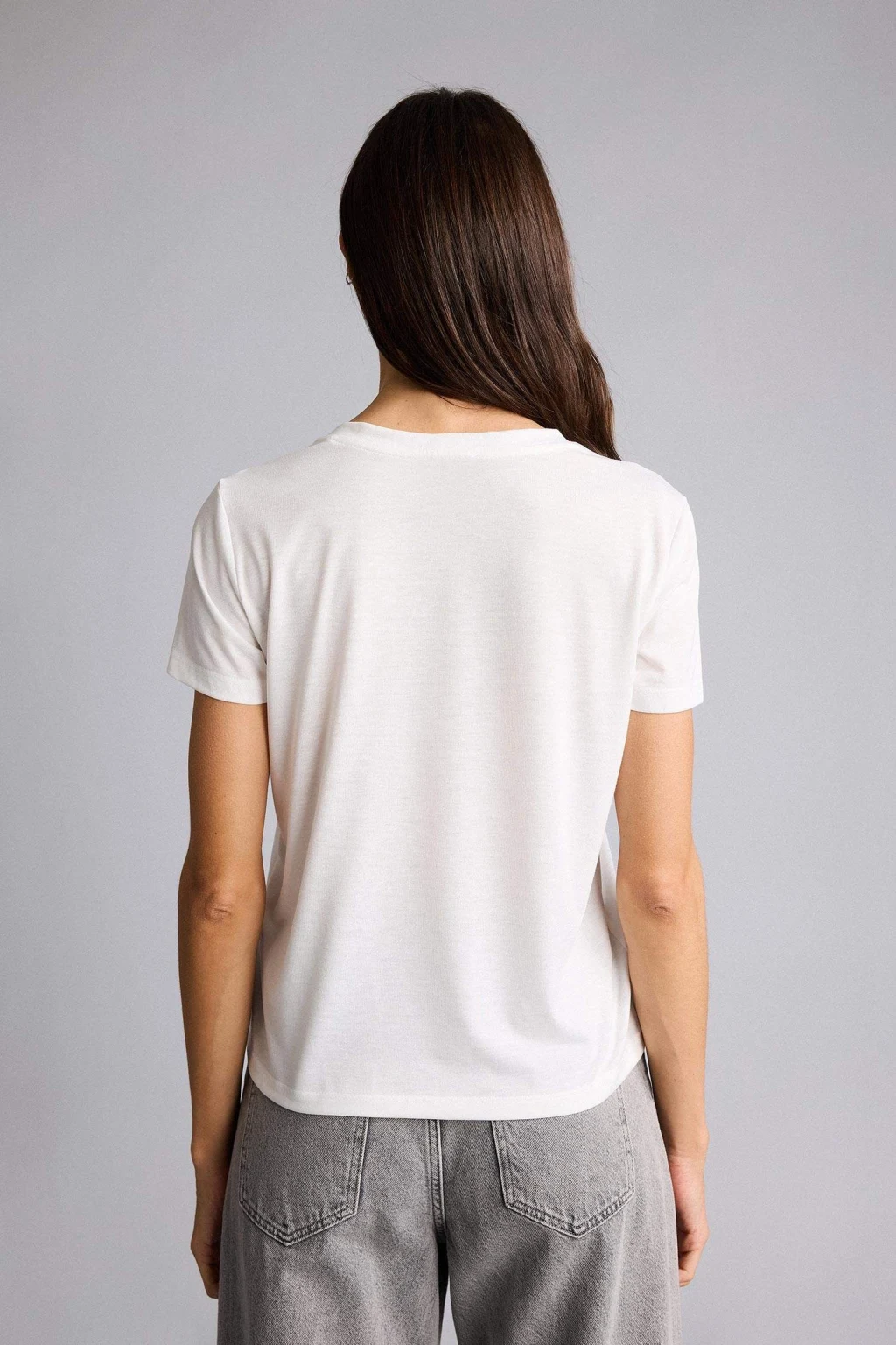 LCW Vision Beyaz Bisiklet Yaka Baskılı Kısa Kollu Kadın Tişört