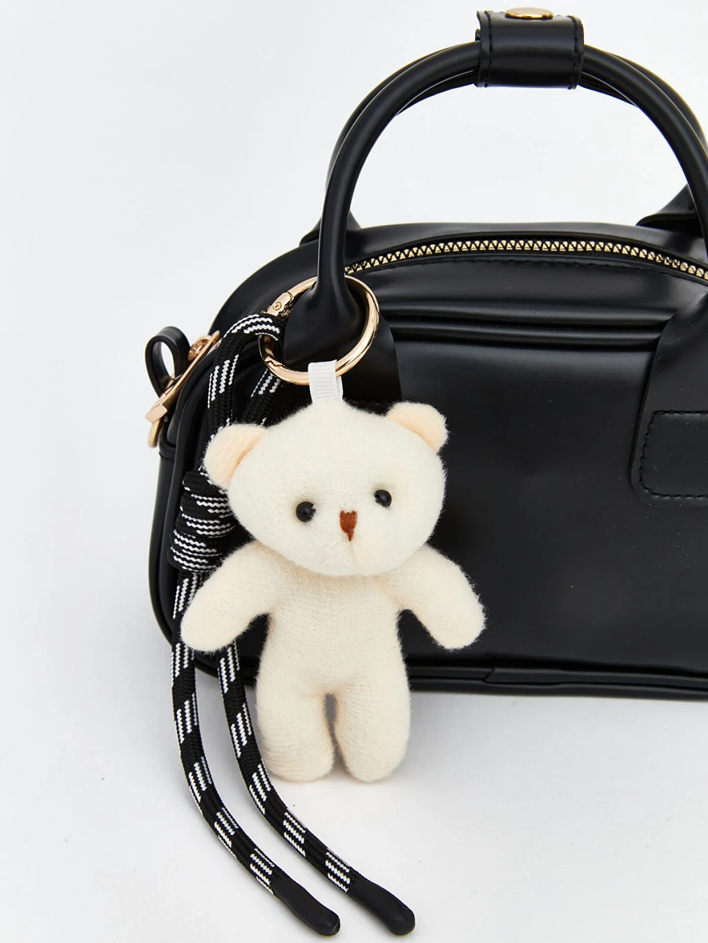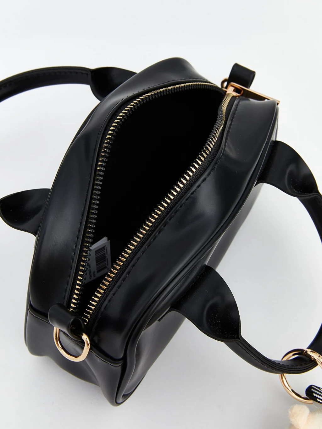 Fermuar kapamalı kız çocuk omuz çantası, el taşıma sapına ve omuz askısına sahiptir. Pelüş ayıcık figürlü aksesuarı bulunur.