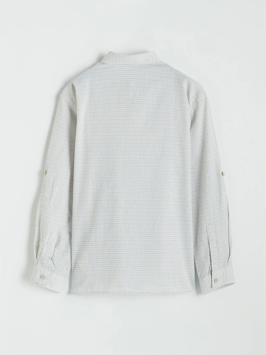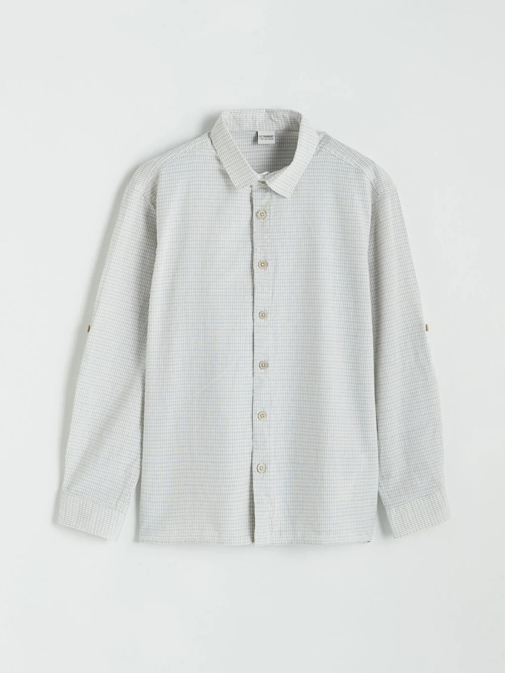 Kareli desenli, uzun kollu erkek çocuk gömlek, %100 Pamuk içerikli gofre kumaştan üretilmiştir. Önden düğme kapamalıdır.