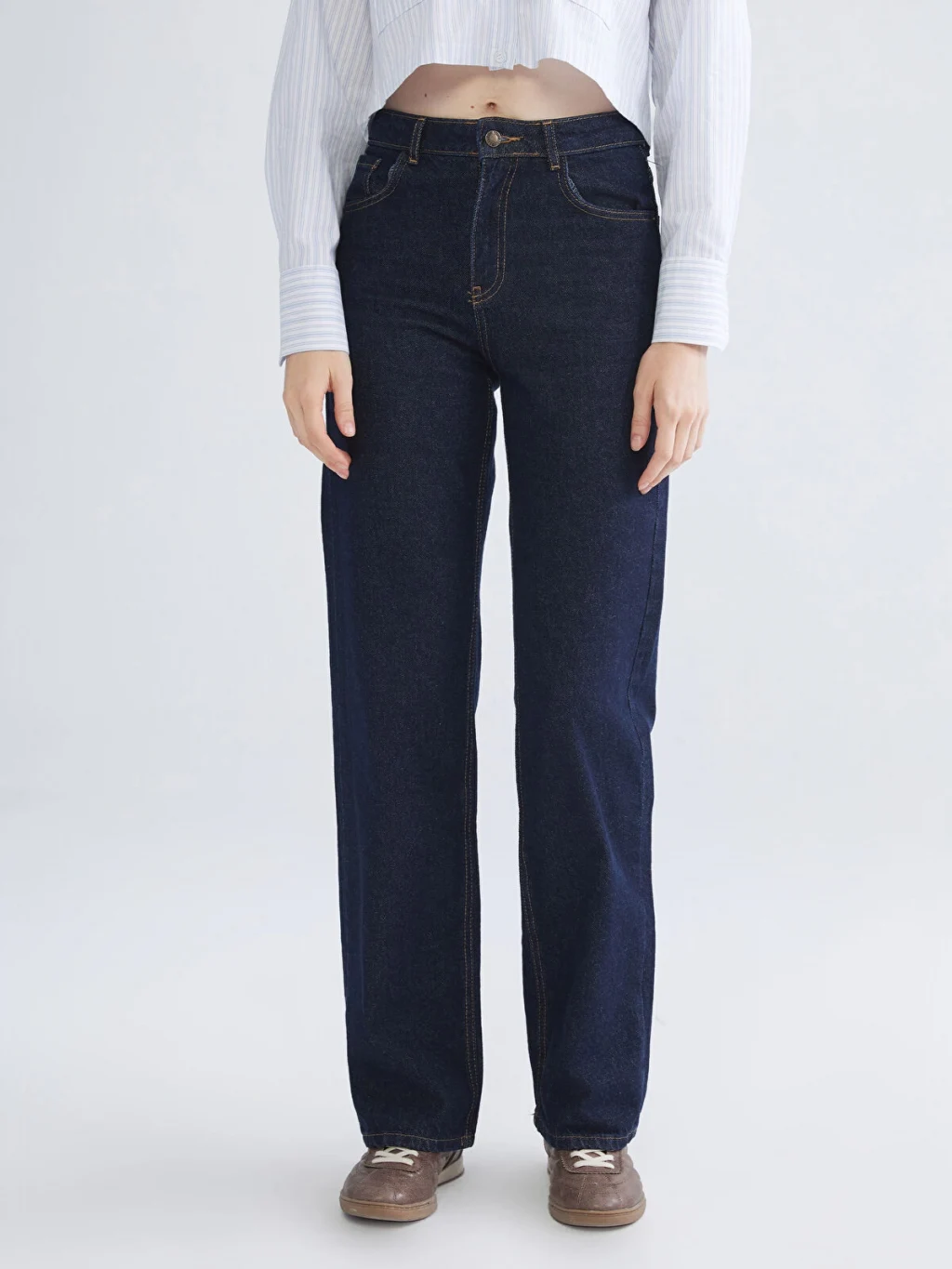 Straight fit; kolay kombinlenebilen zamansız tasarıma sahip model belden paçaya doğru düz inen kesime sahiptir. Gün boyu rahatlık ve hareket özlüğü için esnek yapılı kumaştan üretilmiştir.