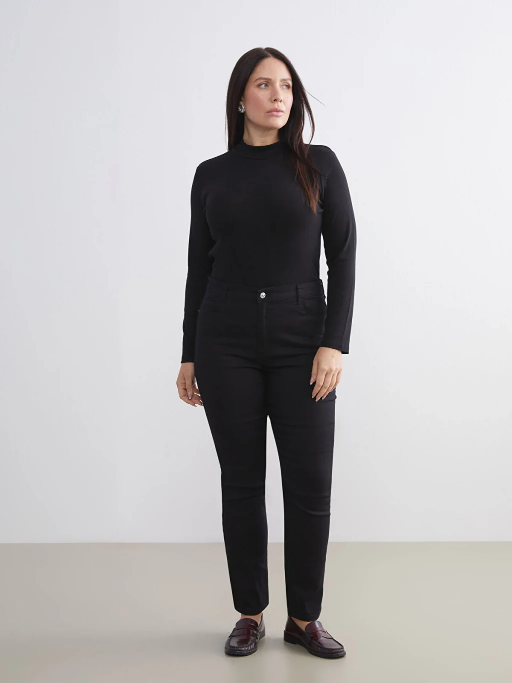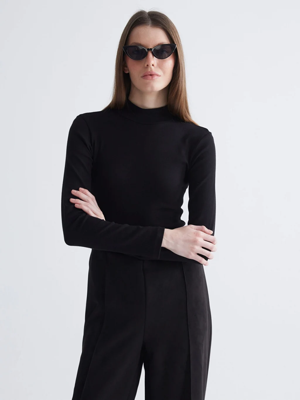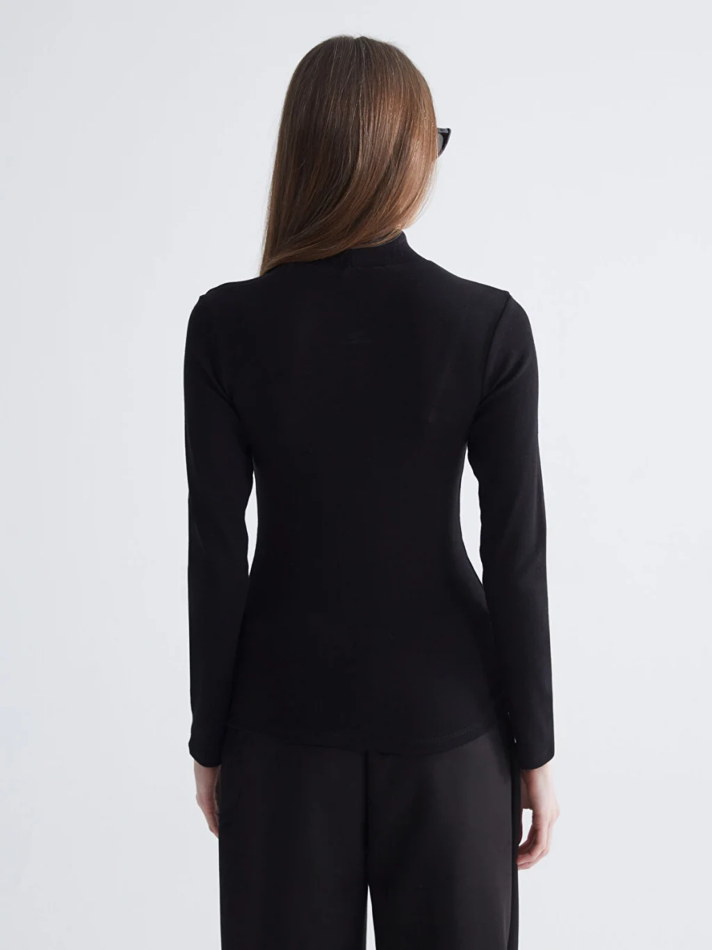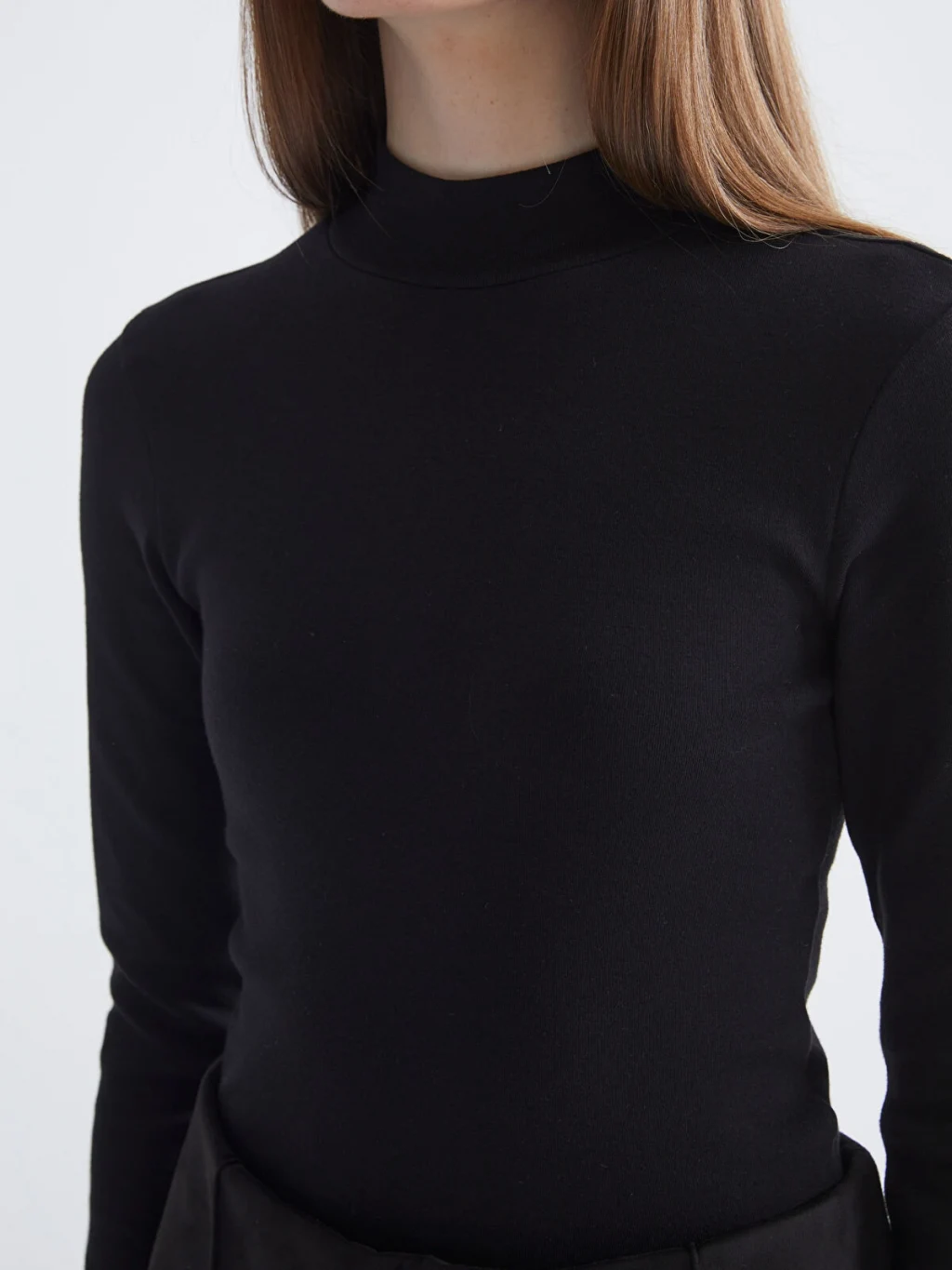 Dik yaka kadın body, ribana kumaştan üretilmiştir. Vücuda oturan tasarıma sahiptir.