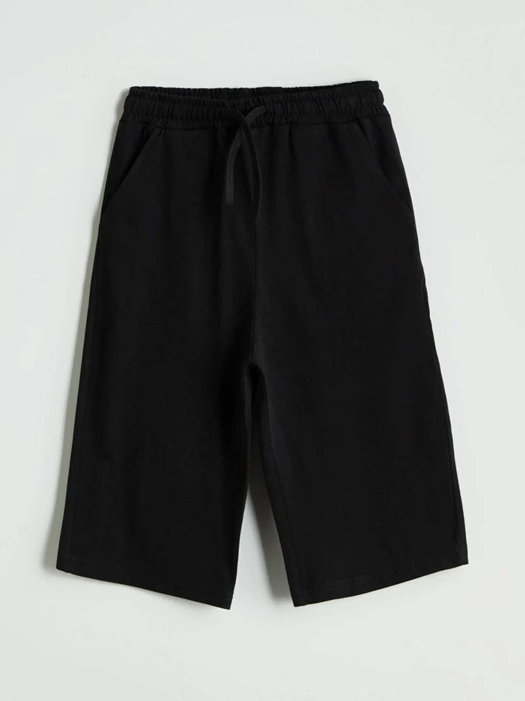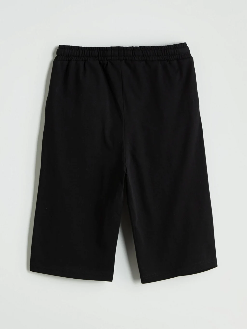 Yüksek pamuk içeren penye kumaştan üretilmiş erkek çocuk şort, lastikli ve bağcıklı bele ve yan ceplere sahiptir.