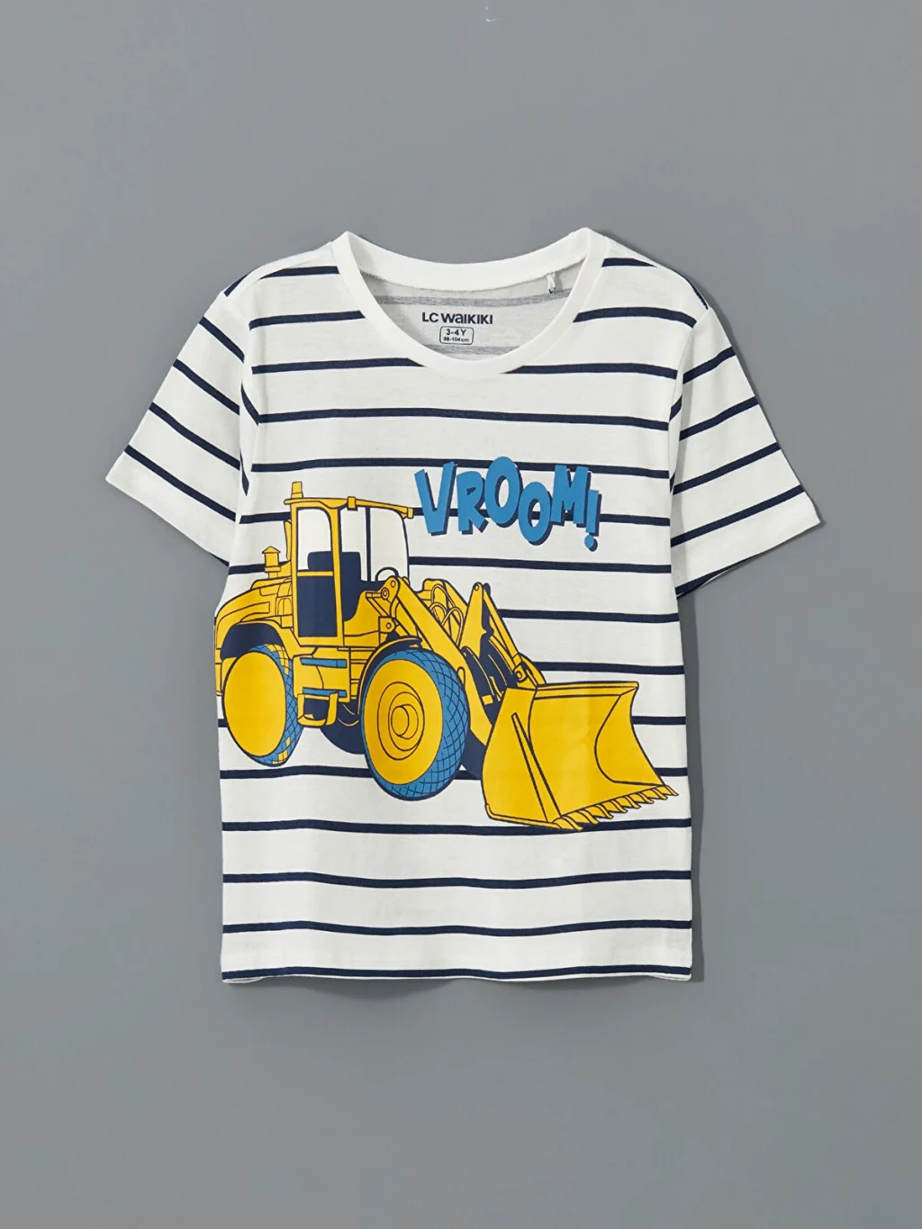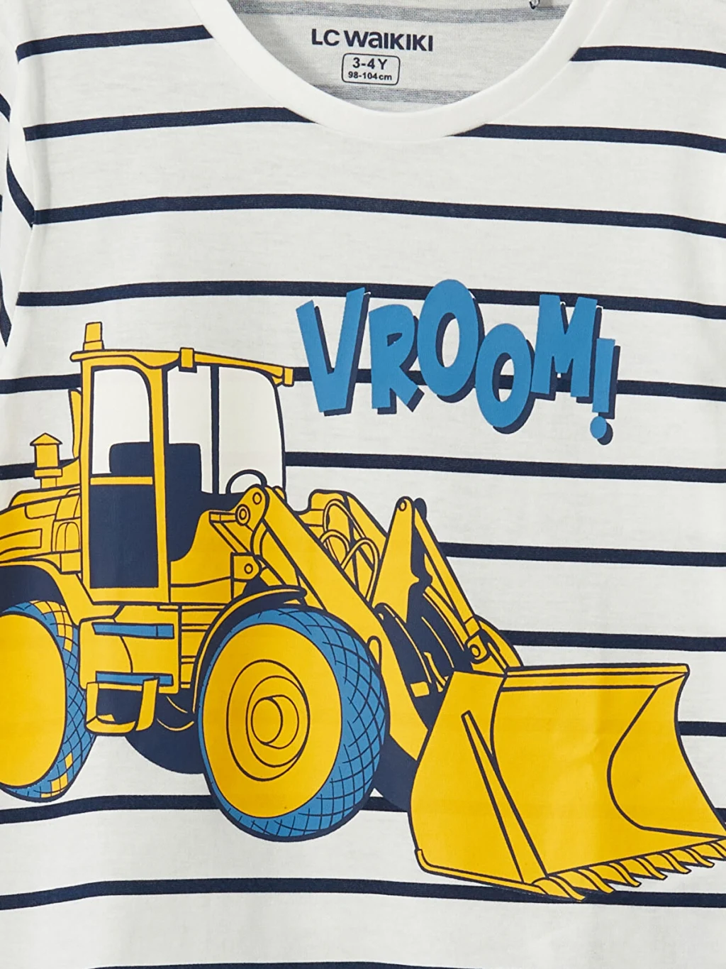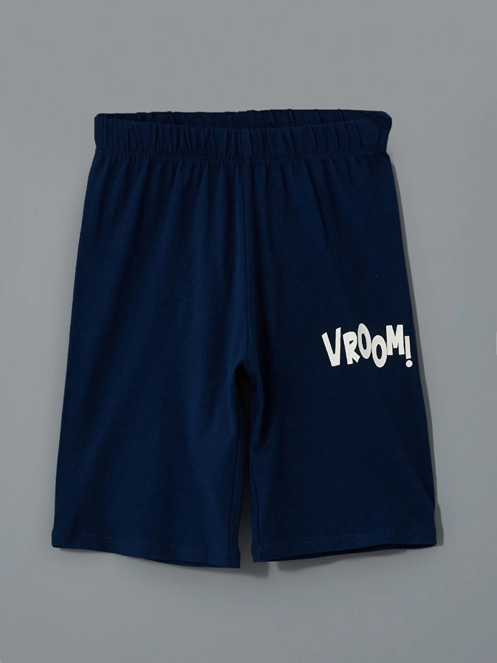 Erkek çocuk pijama takımı, bisiklet yaka, kısa kollu, çizgili ve baskılı tişört ile beli lastikli, baskılı şorttan oluşur.