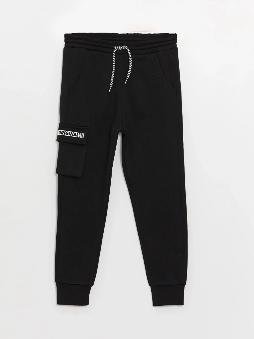 Erkek çocuk eşofman altı, 3 iplik şardonlu kalın kumaştandır. Beli lastikli ve bağcıklıdır. Yan cepleri, kapaklı kargo cebi ve ribanalı paçaları vardır.