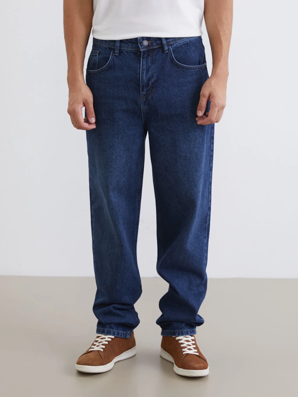 Normal bel, düz paça kesimli erkek pantolon, beş cepli tasarıma sahip olup fermuar ve düğme kapamalıdır.