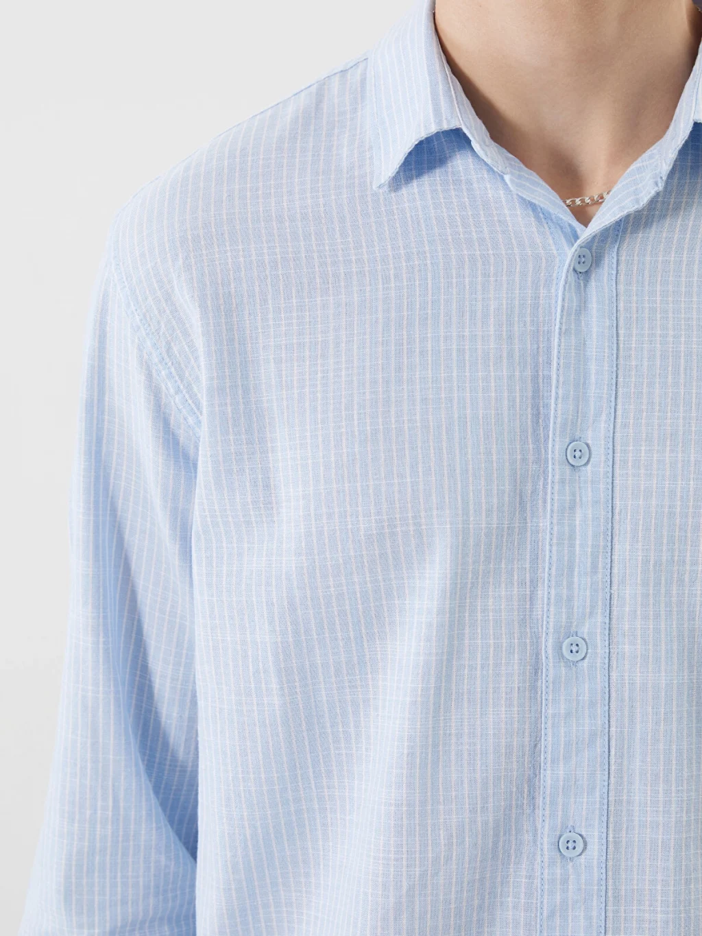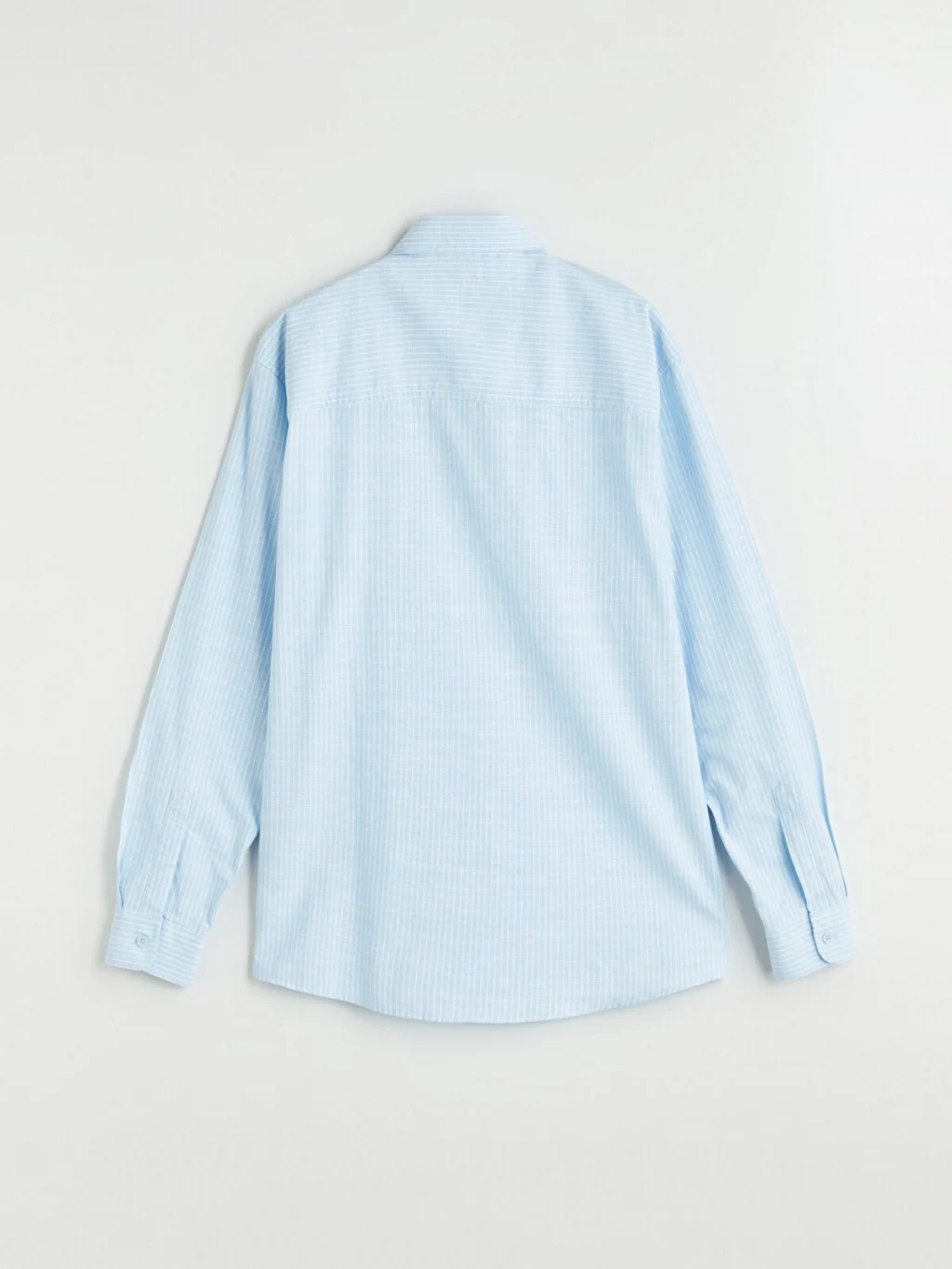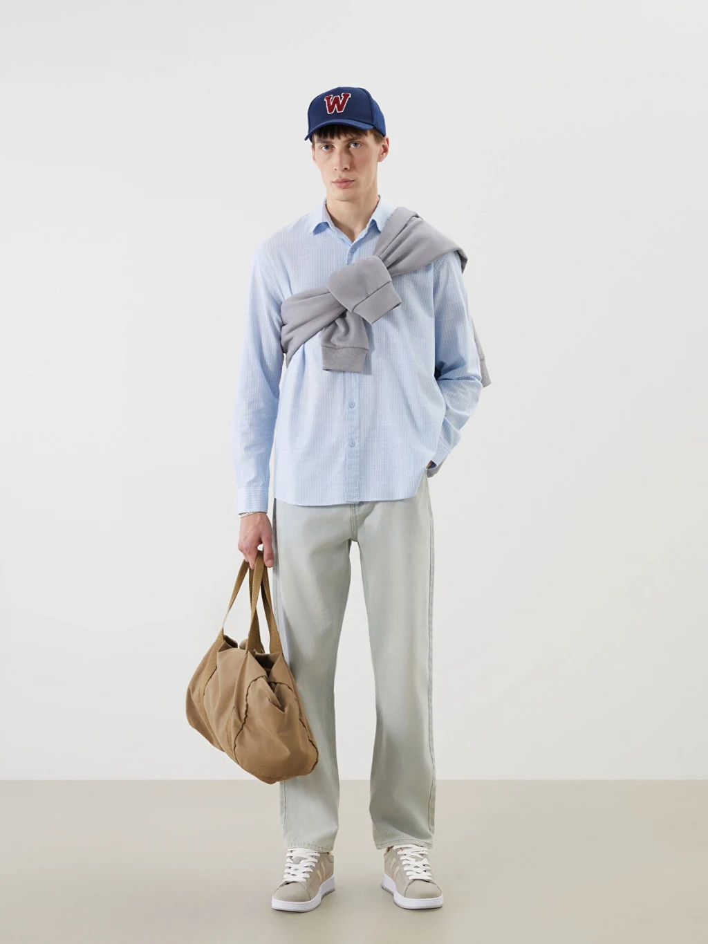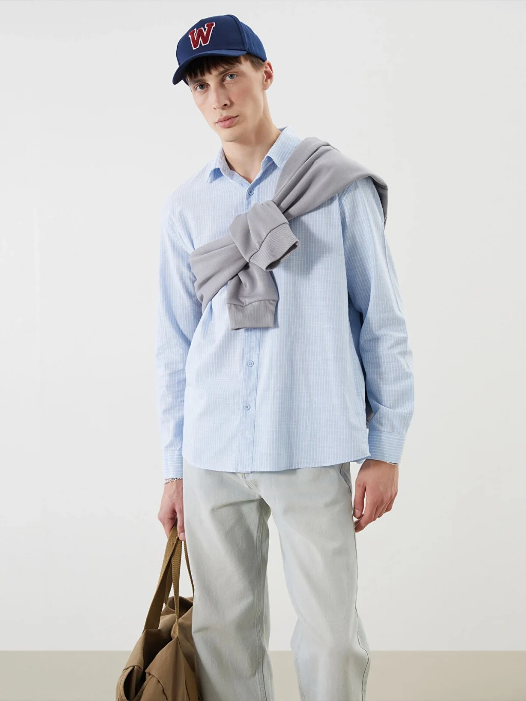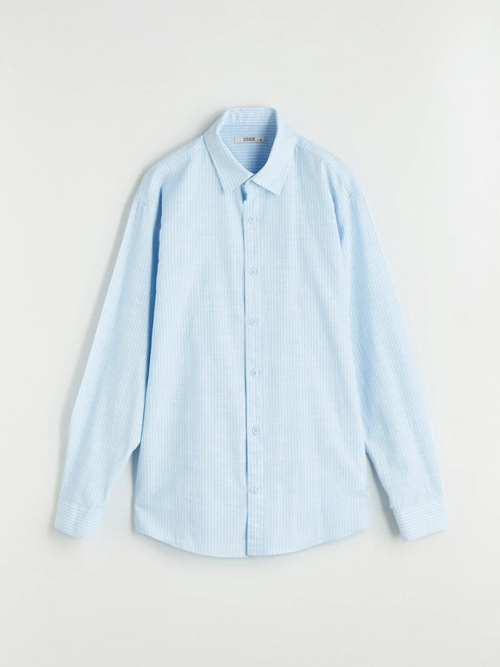 Keten görünümlü kumaştan üretilen, desenli erkek gömlek, gömlek yakalı ve uzun kolludur. Önden düğme kapamalıdır.