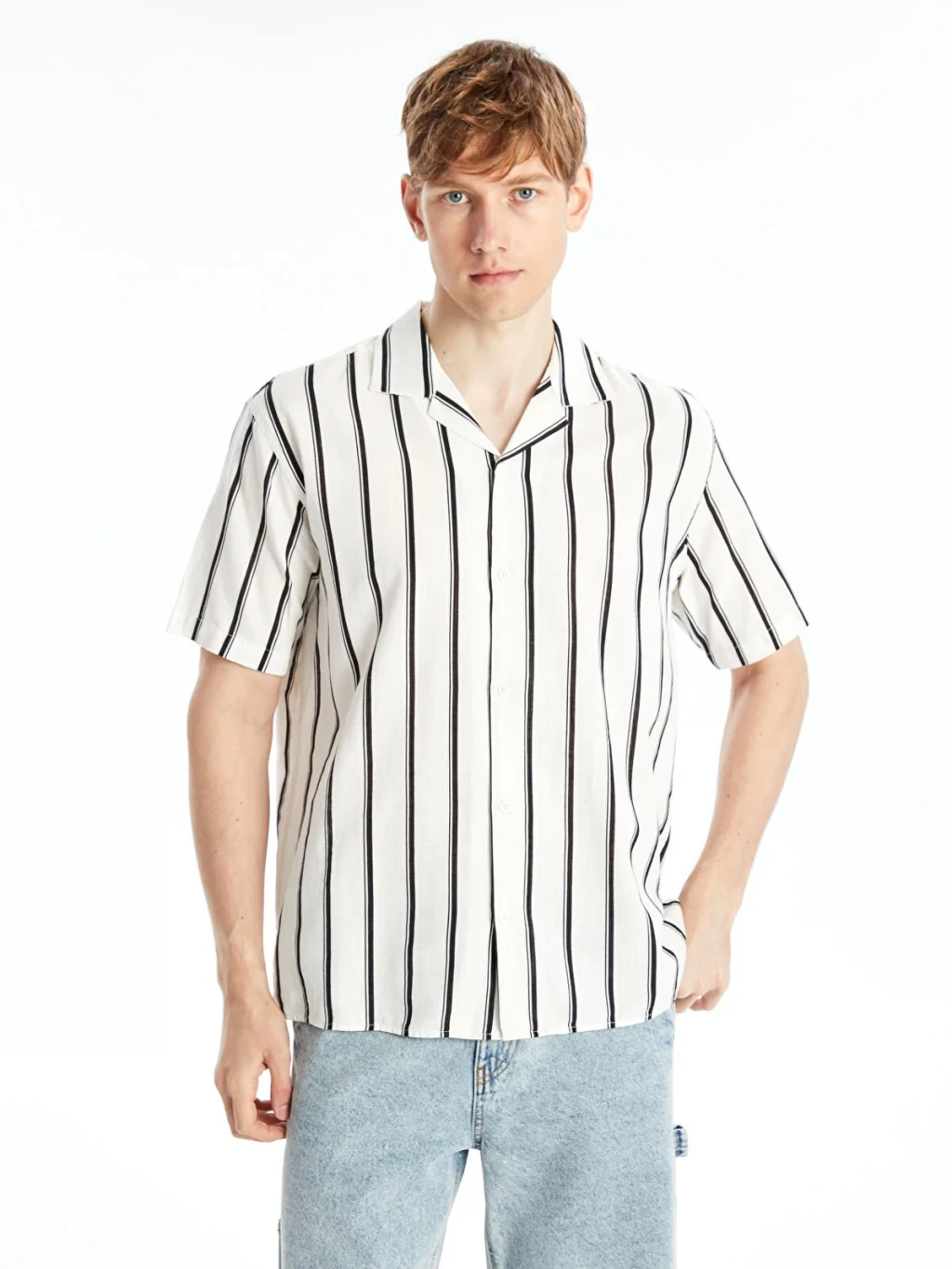 Keten karışımlı kumaşı sayesinde gömlek hem hafifliğe hem de nefes alabilir özelliğe sahiptir, kısa kollu tasarımı rahat bir kullanım sunar.